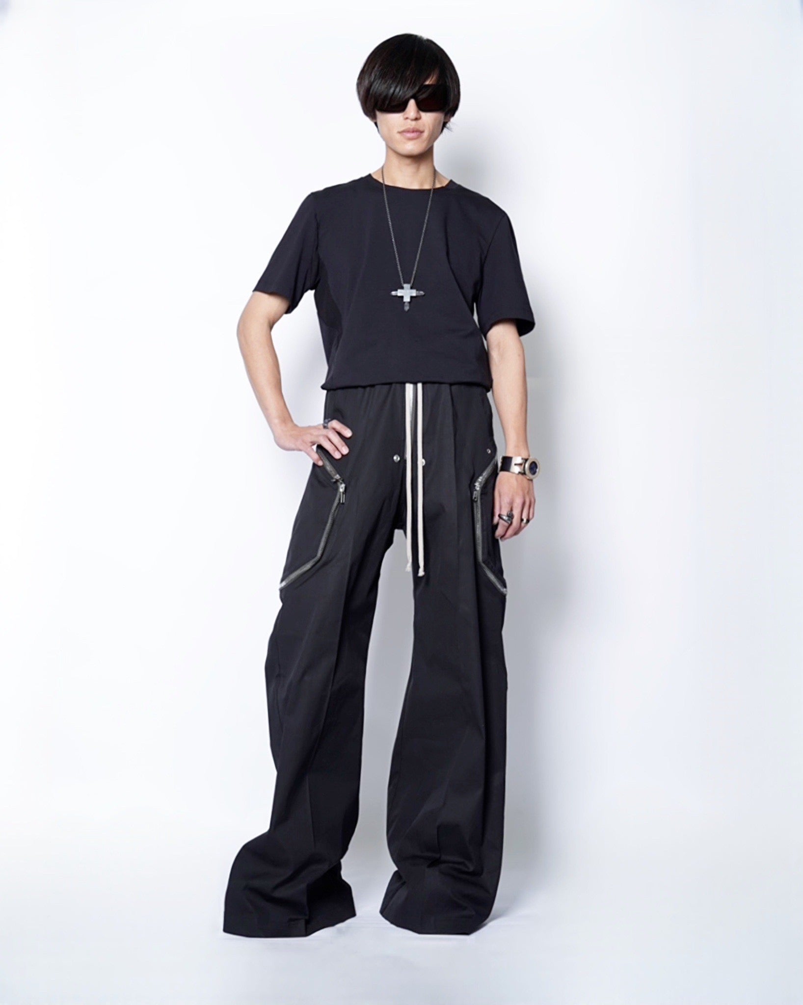 ・裾に強めにクッションを溜めて穿くことでドレーピーで重厚的なフォルムとなり、Rick Owensらしさを強めることもできます。