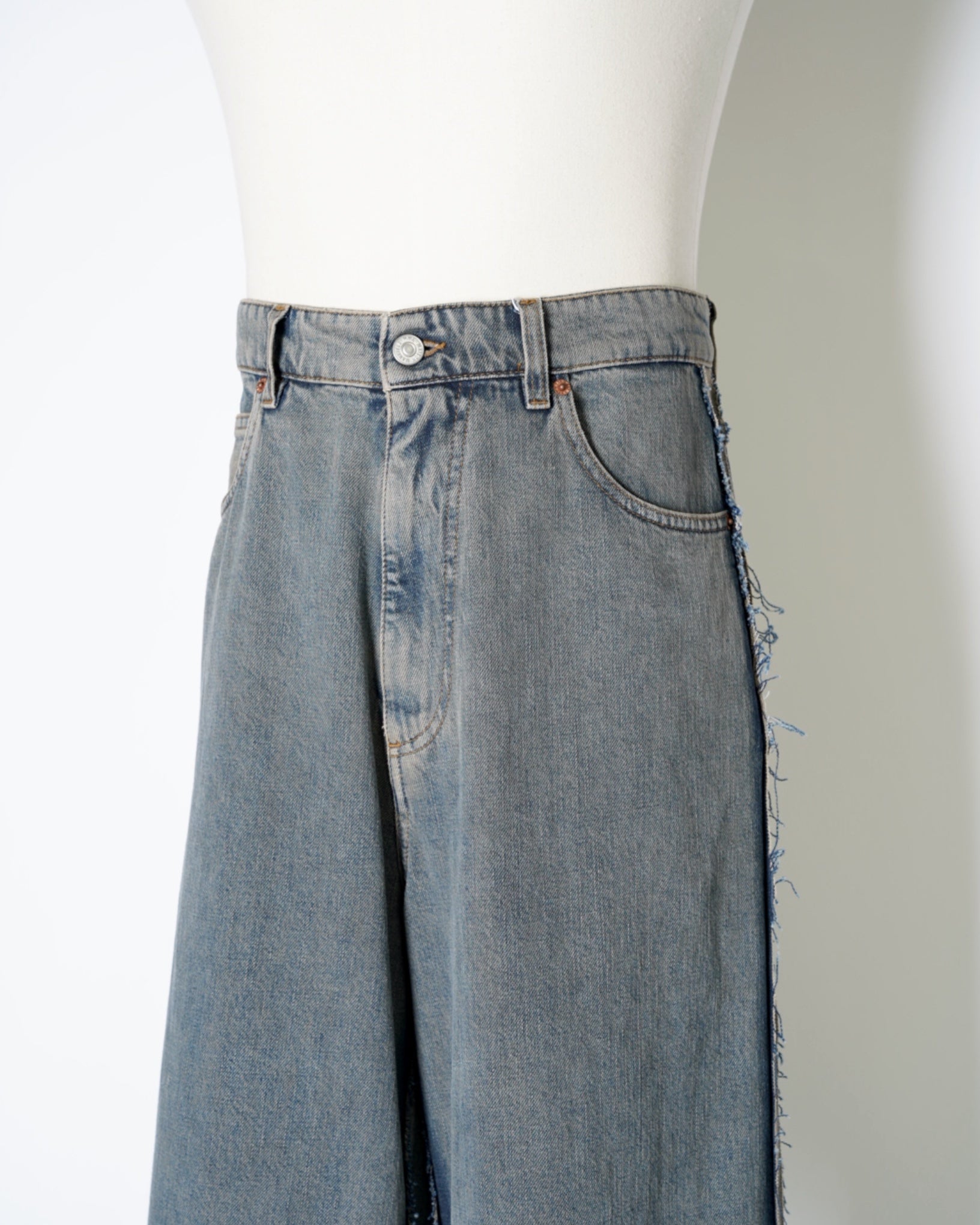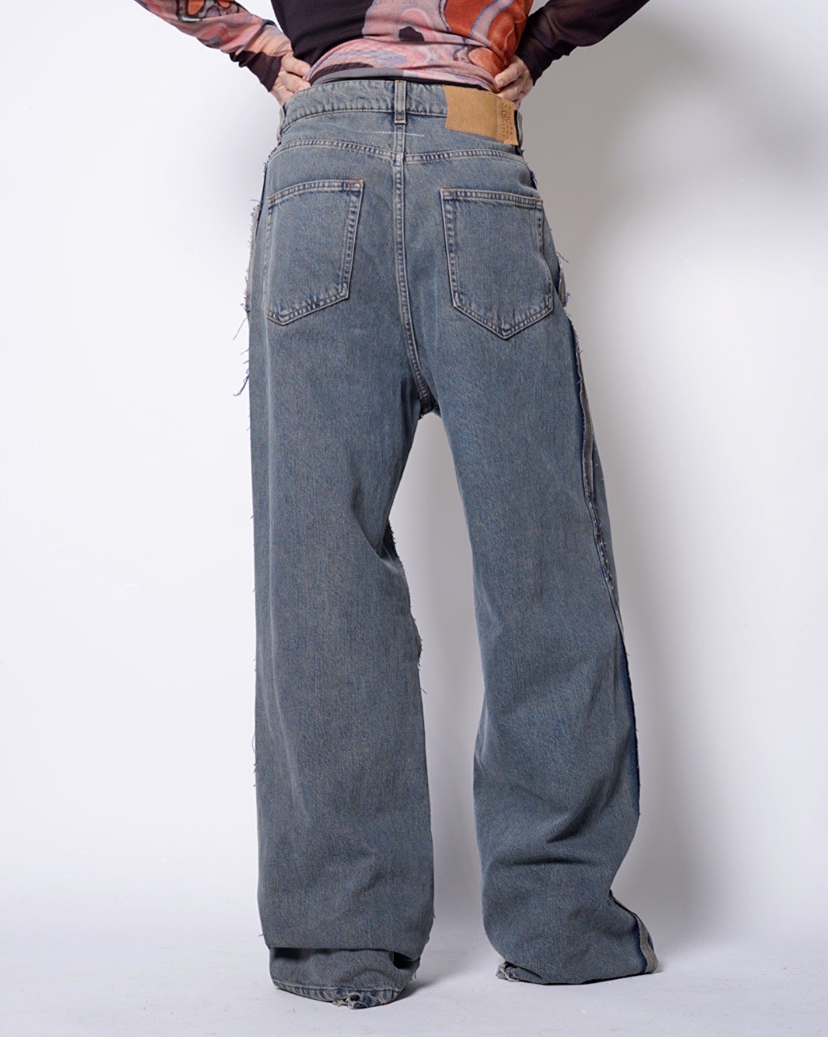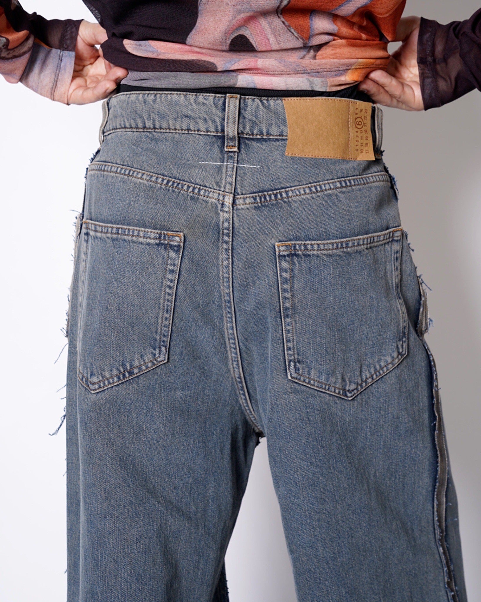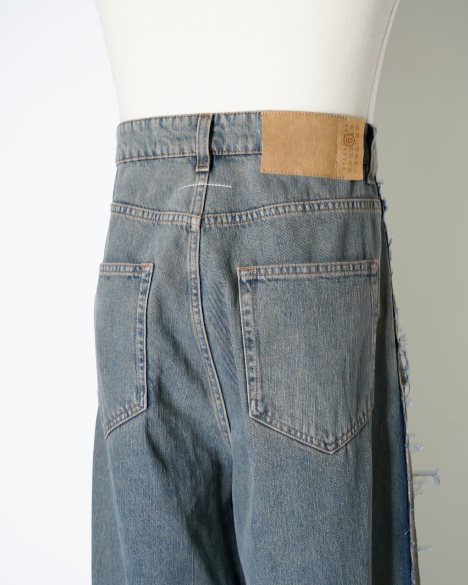 ・ローエッジの立ったアウトシームのみを残したデザイン。これによりまるでデニムの上に更にデニムがあったかのような形跡となっており、MM6らしい脱構築的なデザインとなっています。