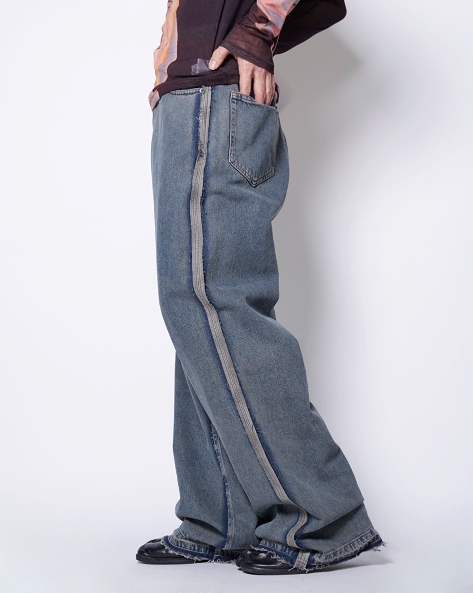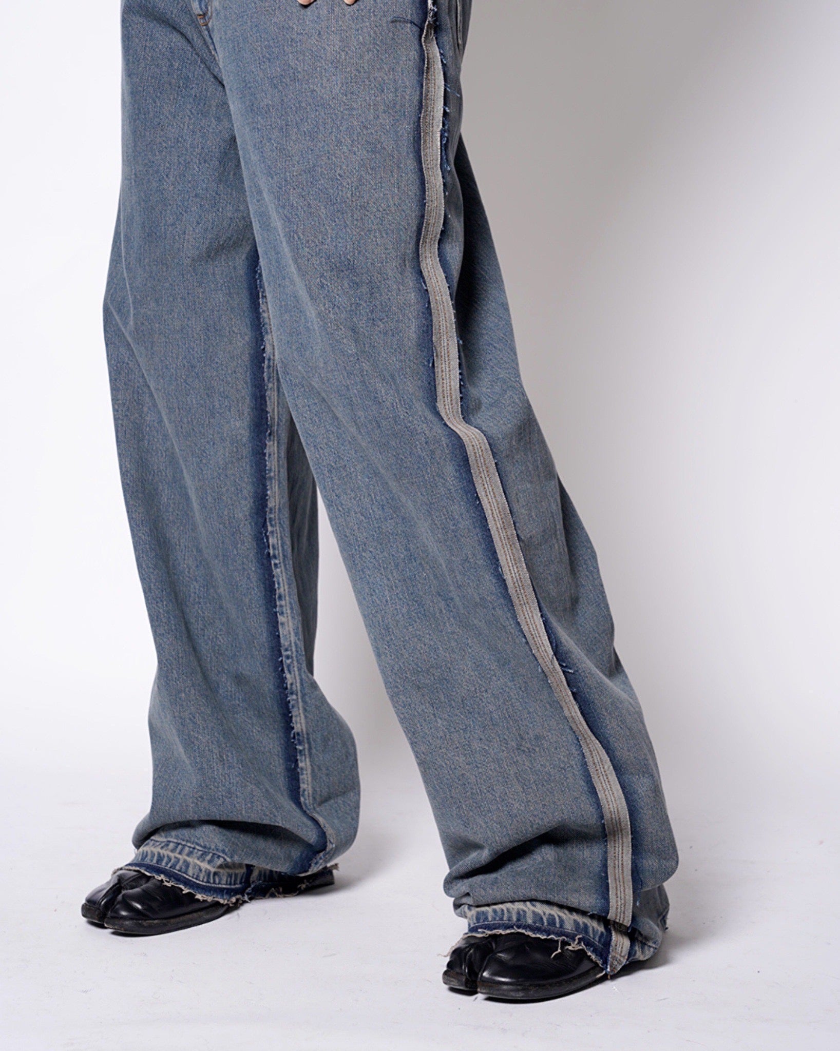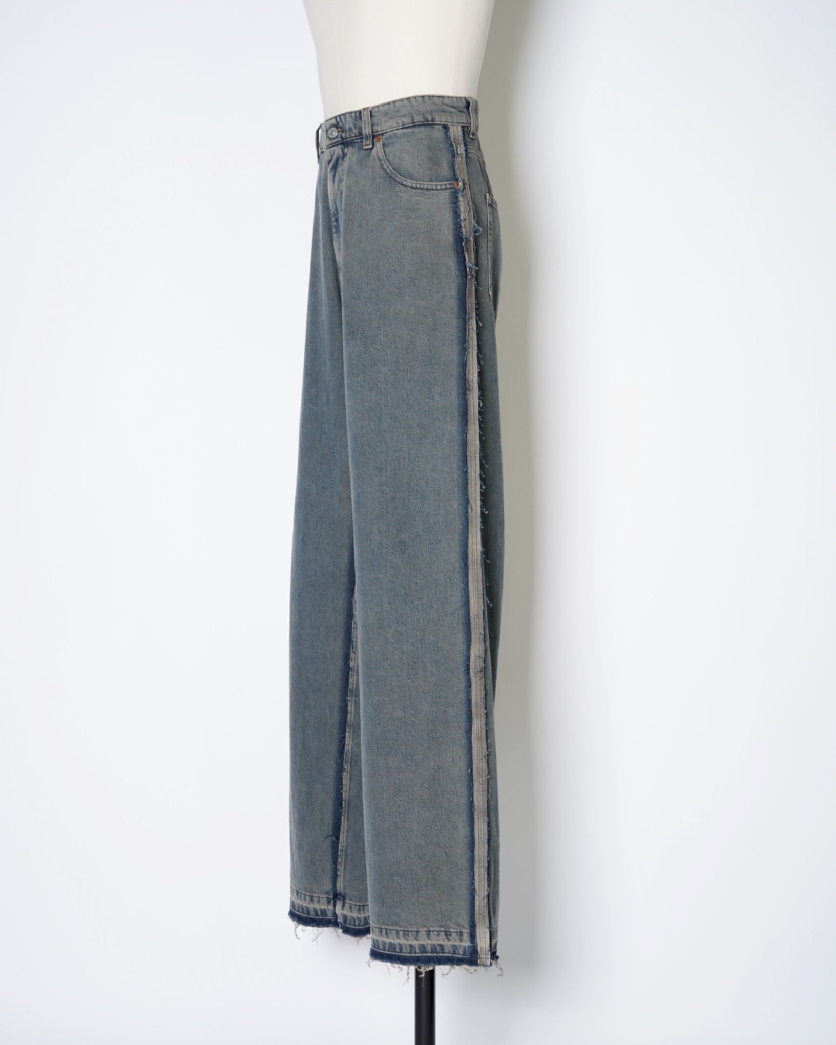 ・ローエッジの立ったアウトシームのみを残したデザイン。これによりまるでデニムの上に更にデニムがあったかのような形跡となっており、MM6らしい脱構築的なデザインとなっています。