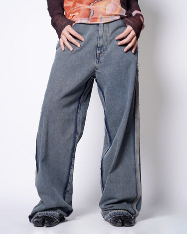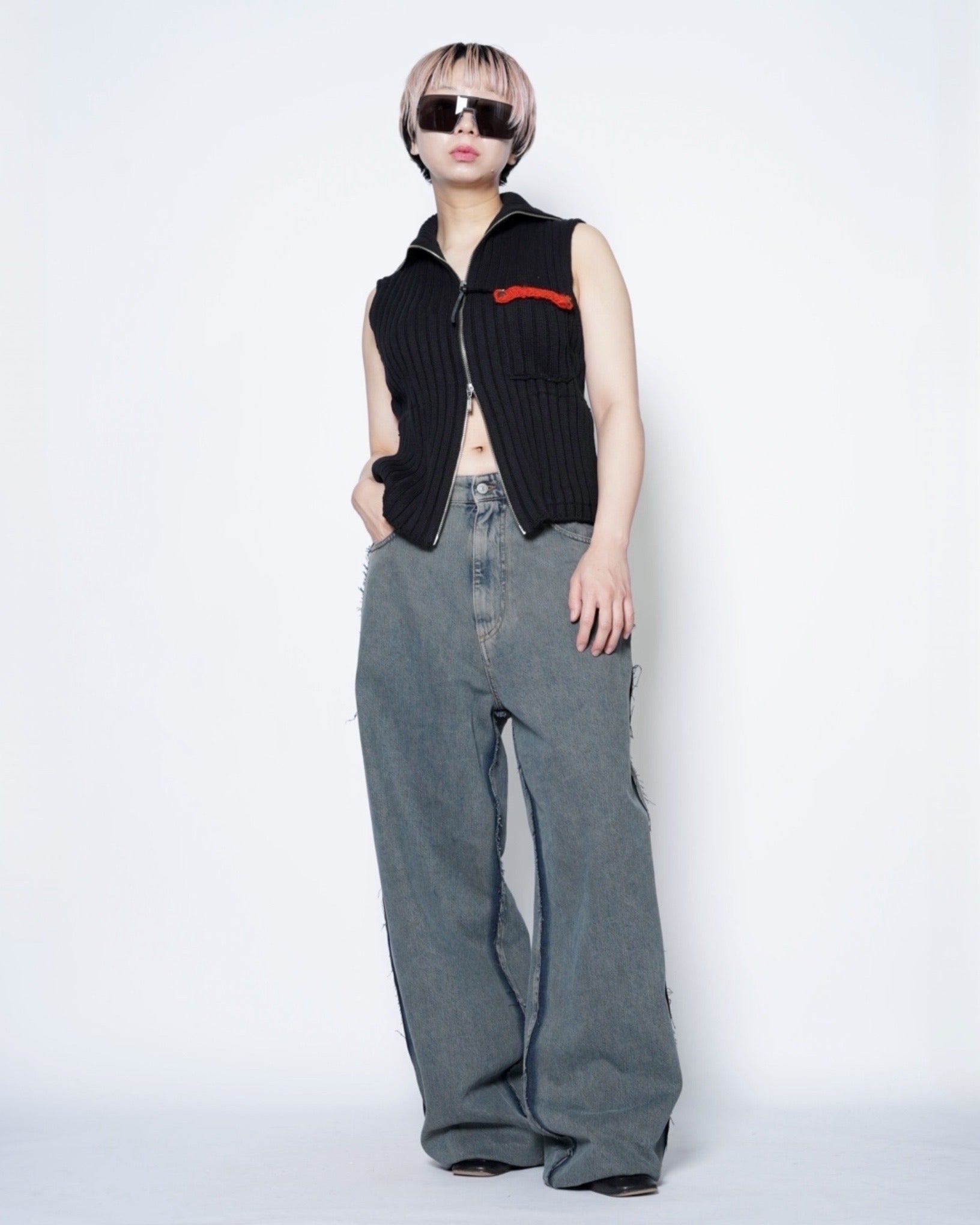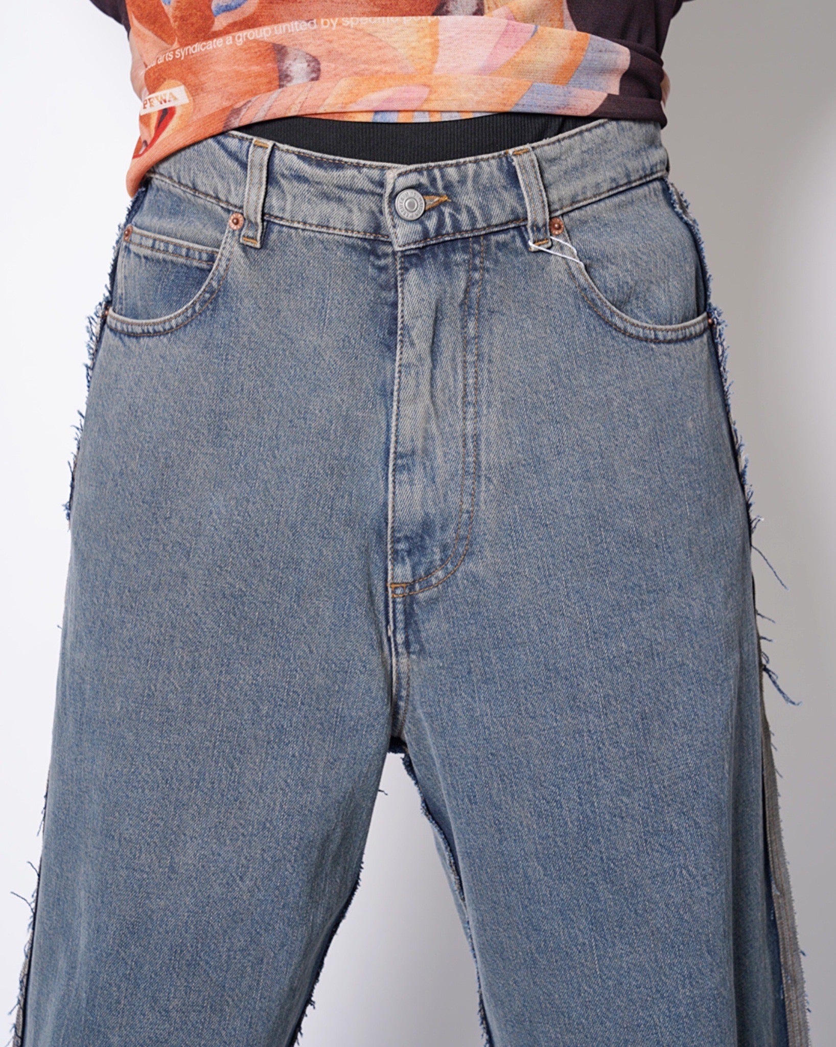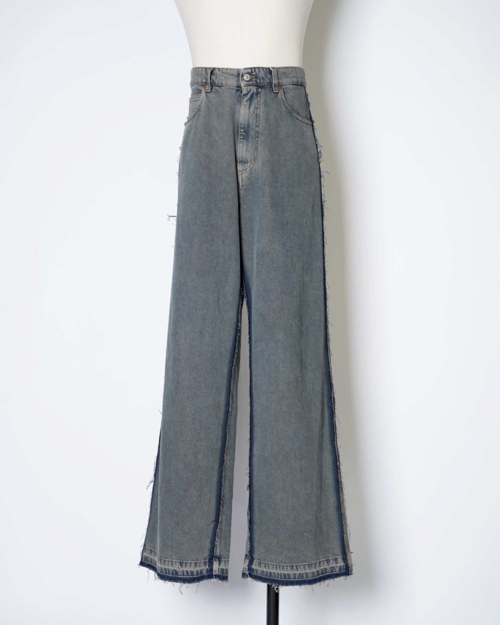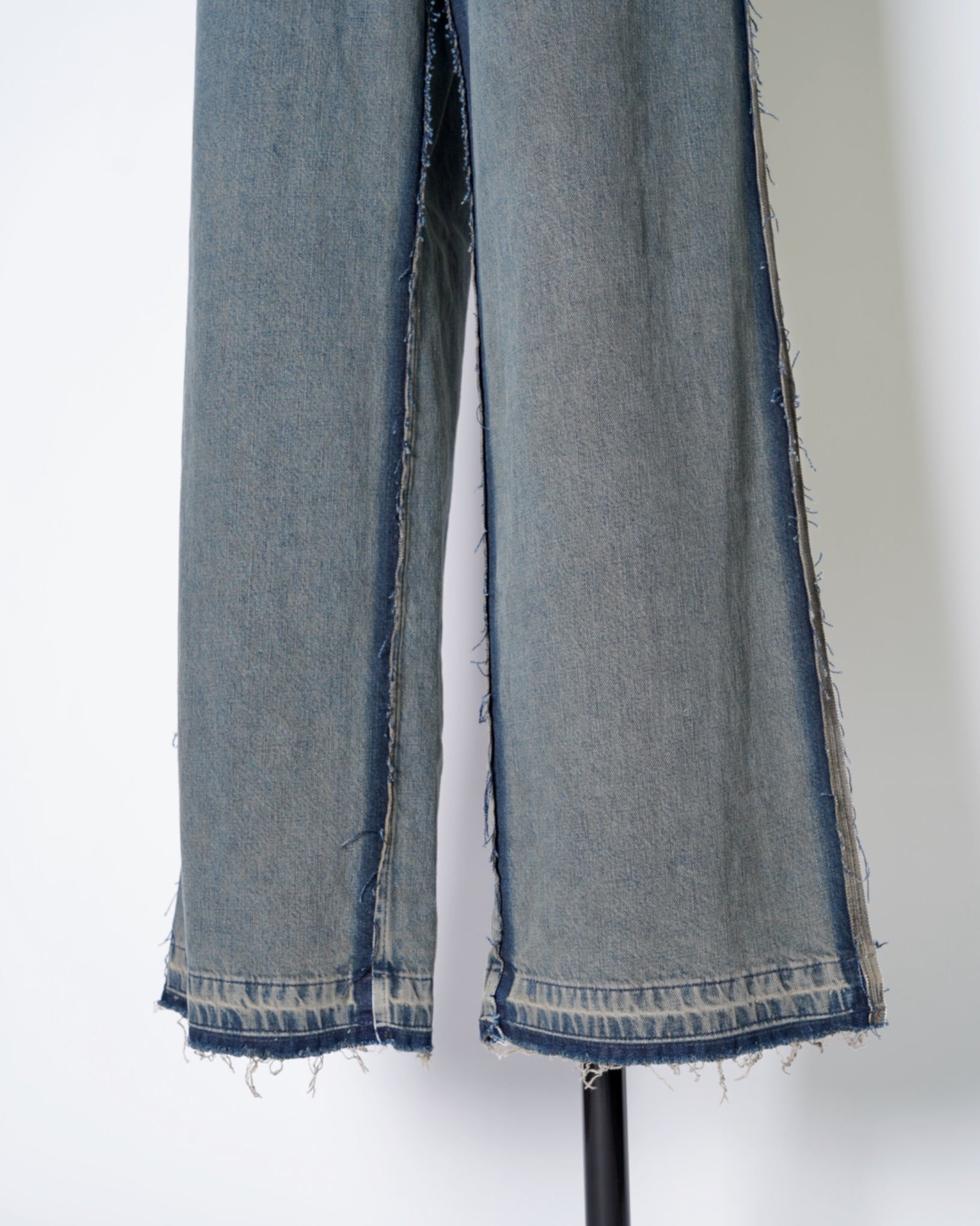 ・ローエッジの立ったアウトシームのみを残したデザイン。これによりまるでデニムの上に更にデニムがあったかのような形跡となっており、MM6らしい脱構築的なデザインとなっています。