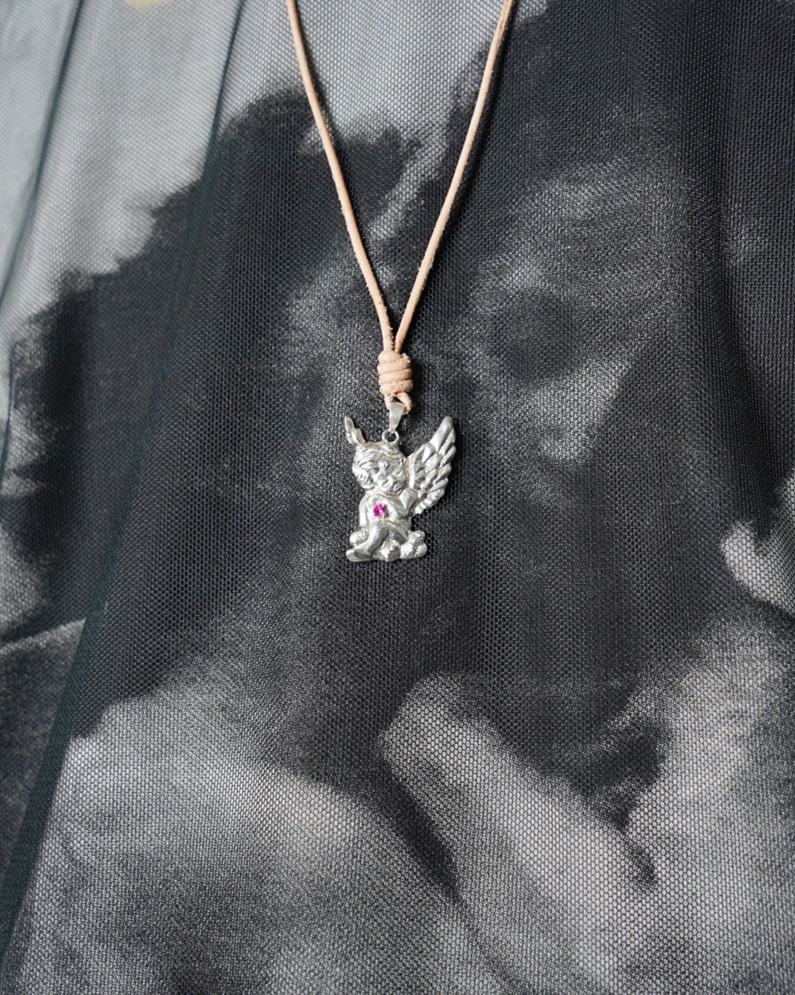 金属の冷たさと革の温もりが混ざり合う、無垢でありながらどこか芯の強さを感じさせる一品。