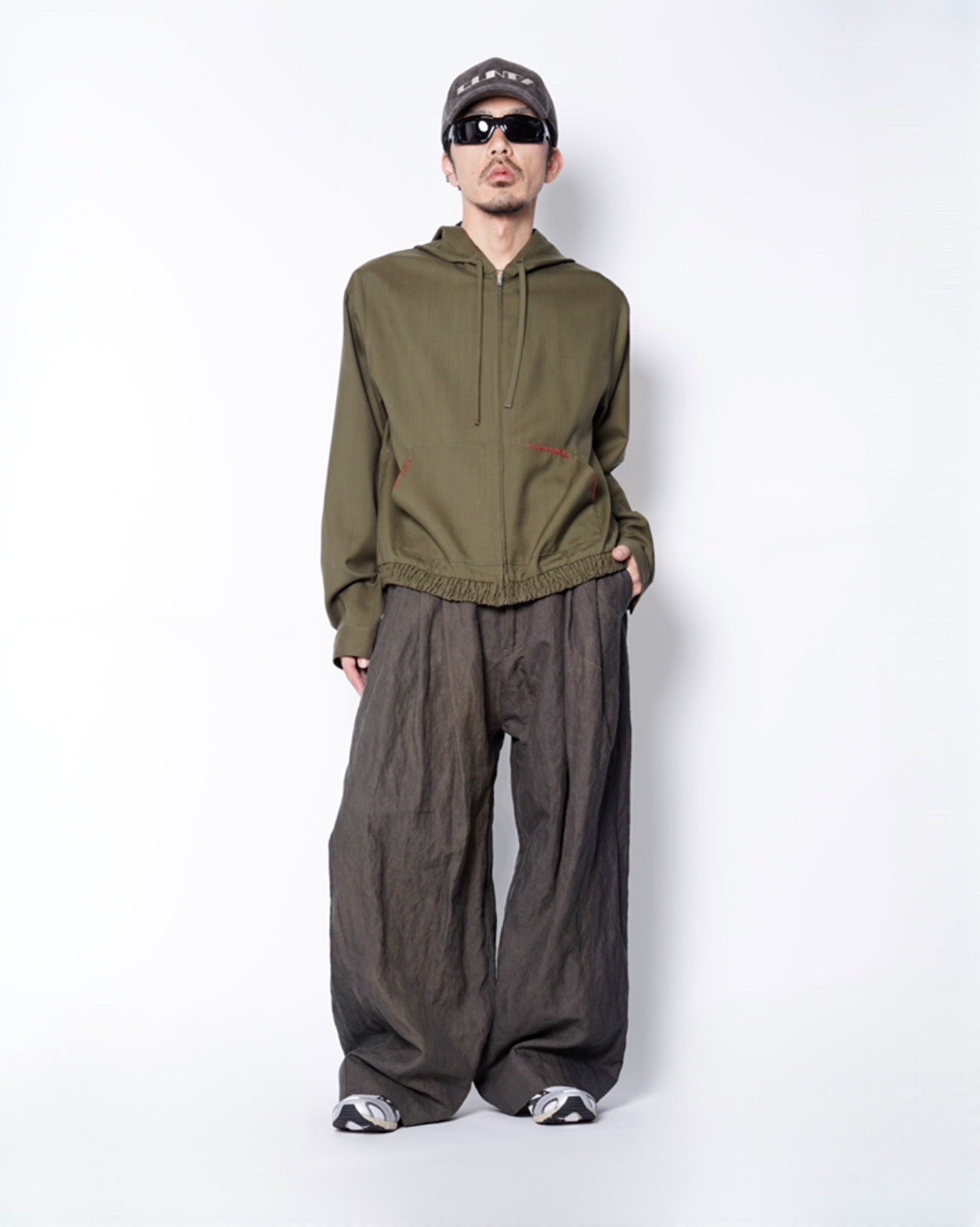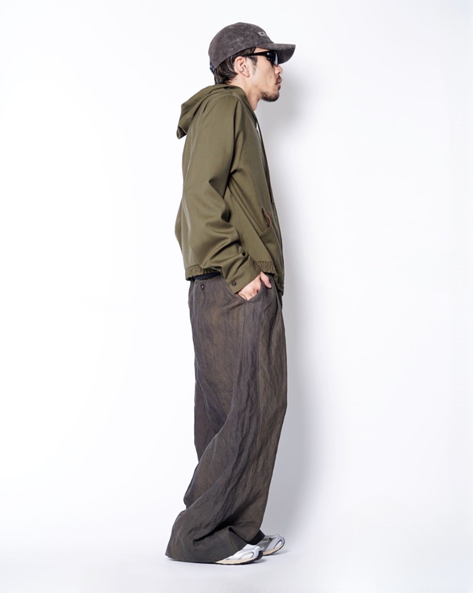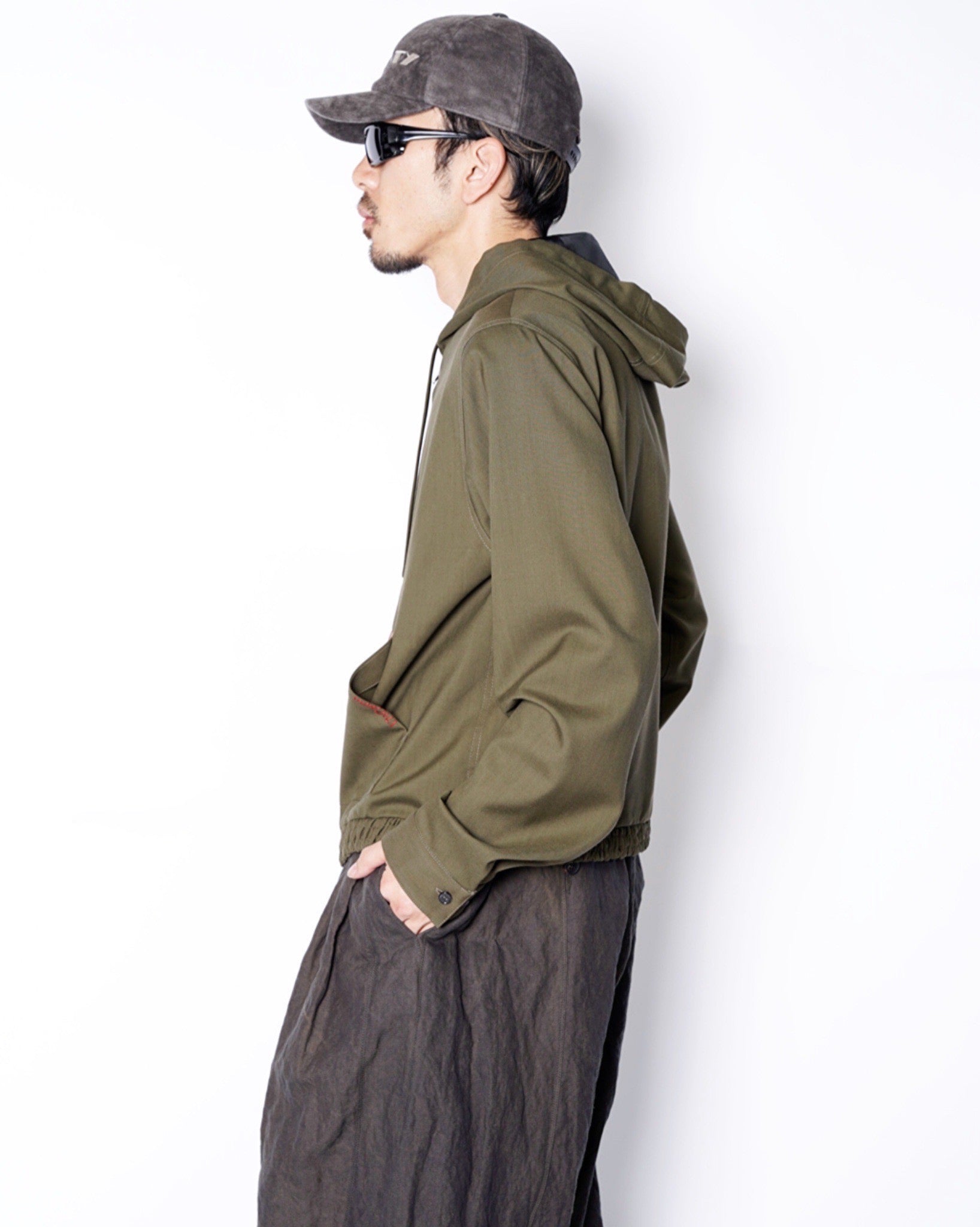 ・トロピカルウールの品のある質感ながらも、フーディーにすることで程よくこなれたカジュアルな仕上がり。