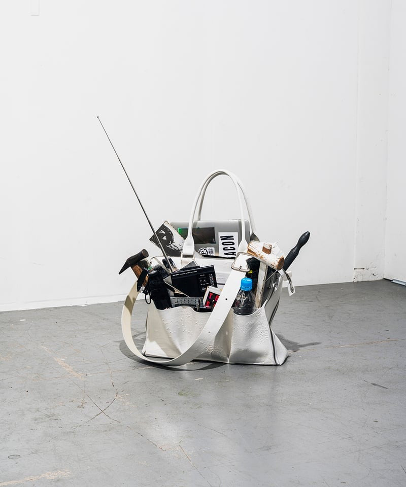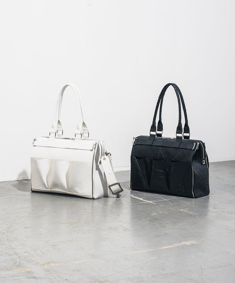 工具を入れるツールバッグをオマージュしたトートバッグ。