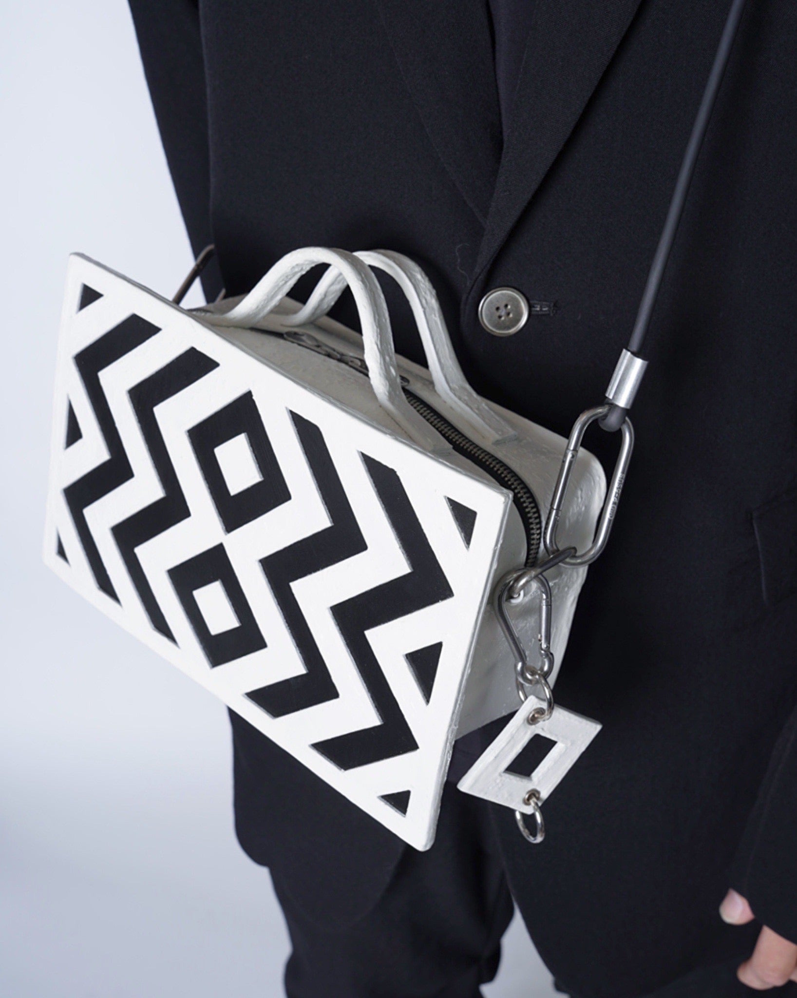 装飾された壁をスパッと切り取ったようなシルエットのソリッドなトート/ショルダー。