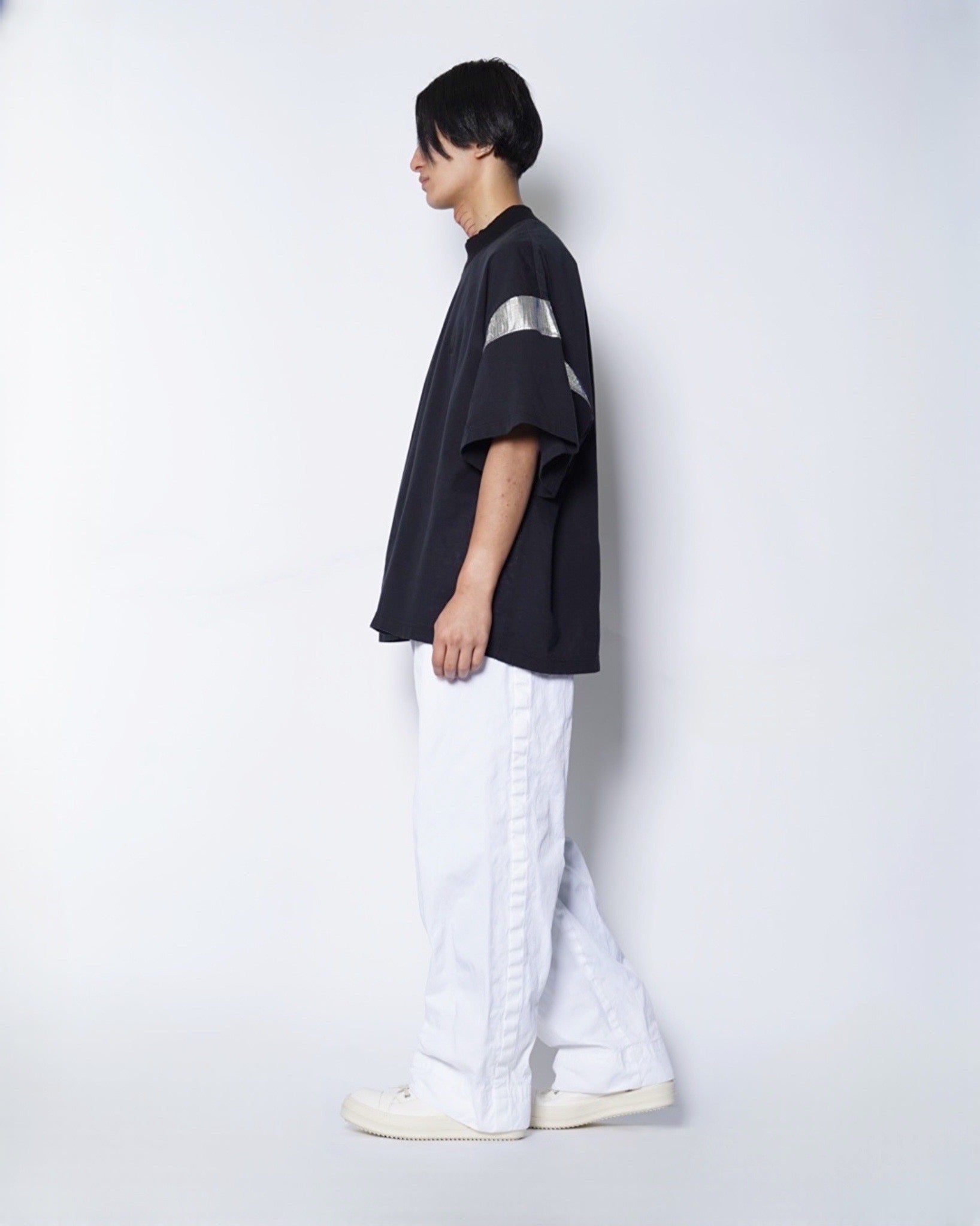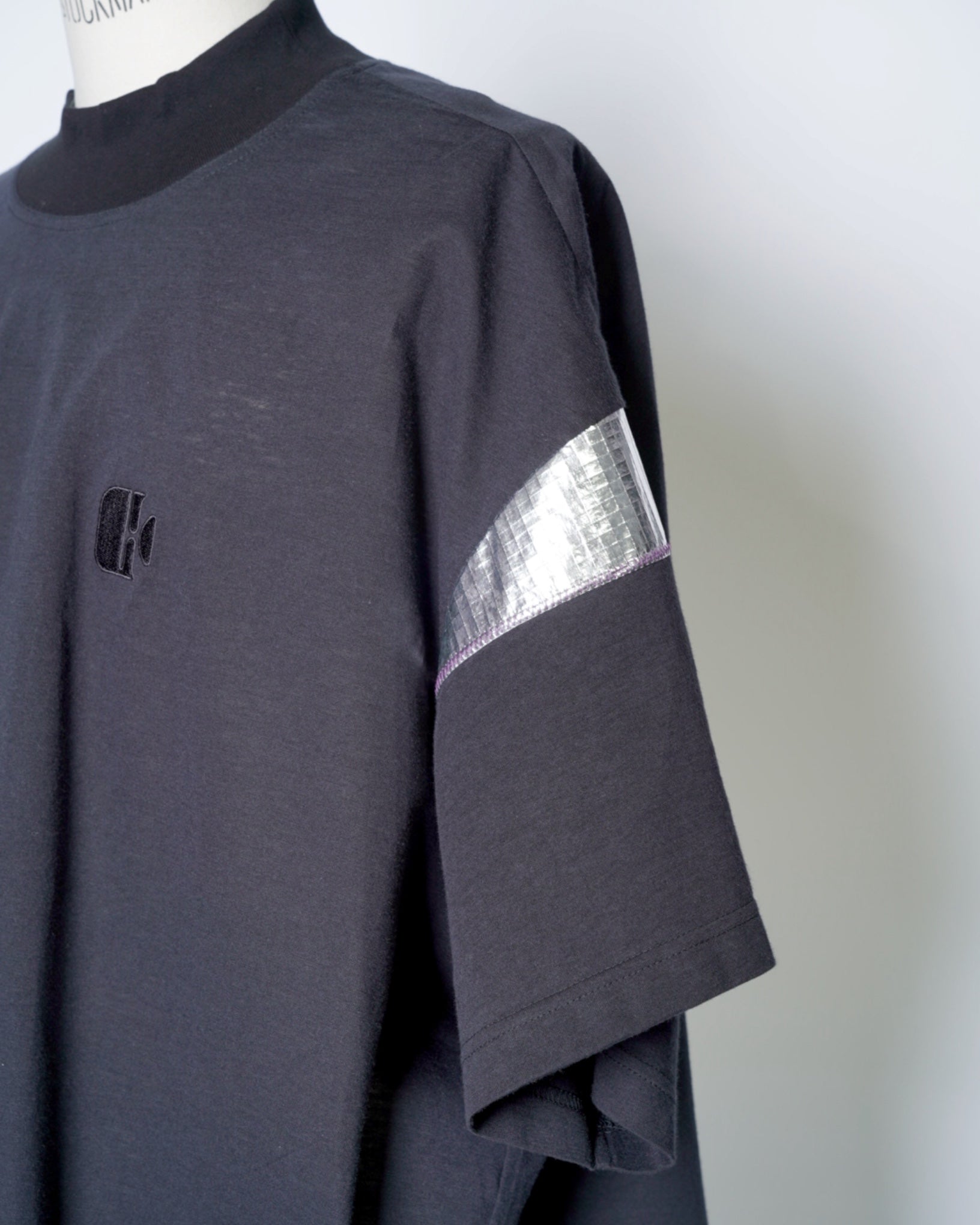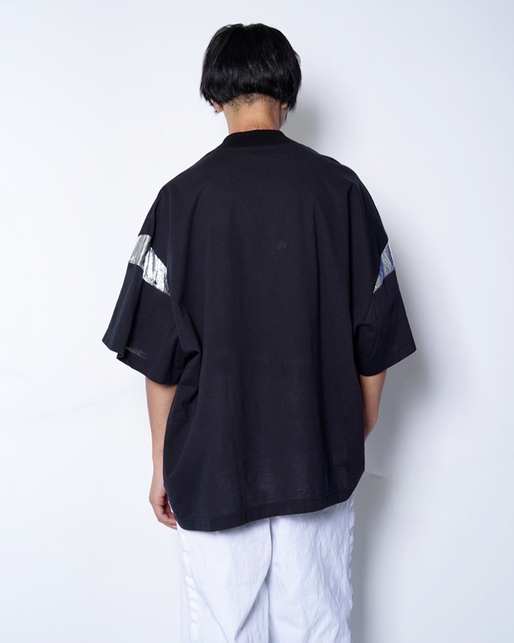・通常服には使われないような異素材を袖に用いることで、異質的でエッジの効いたTシャツに。