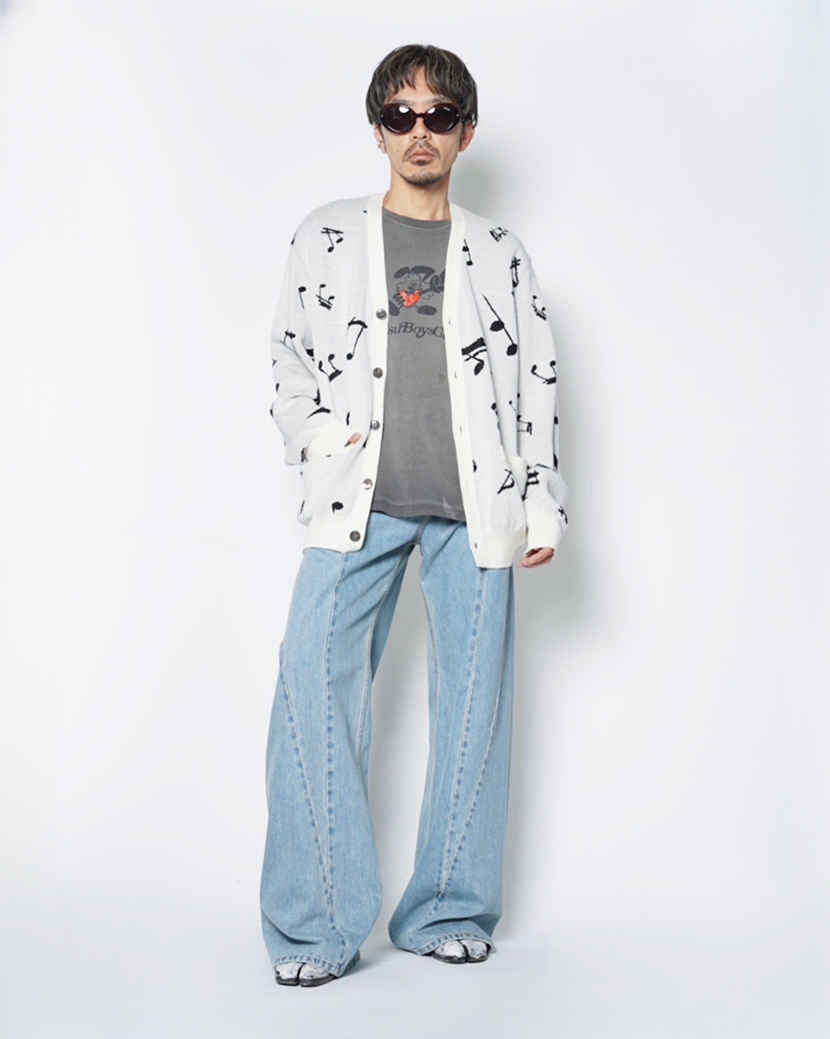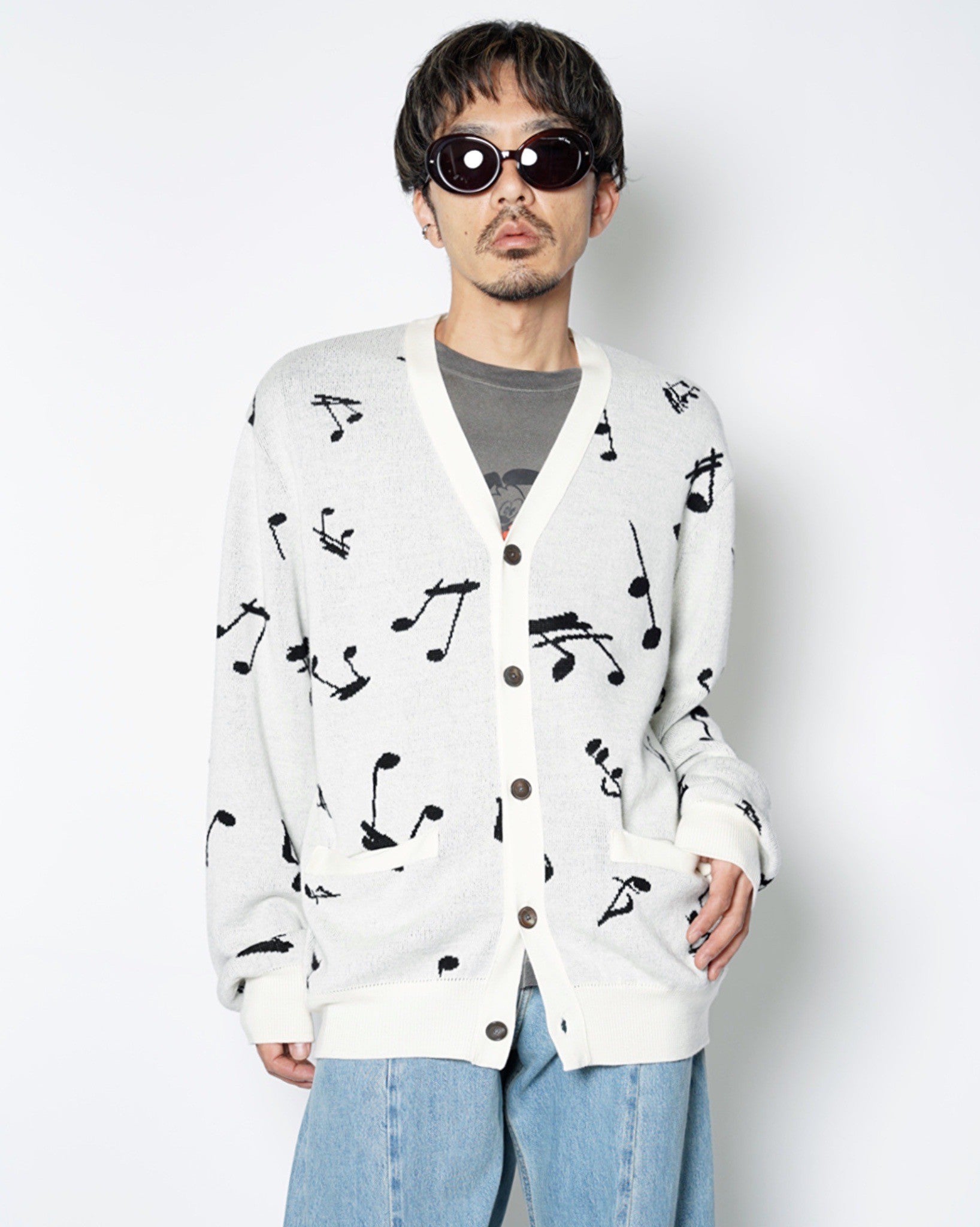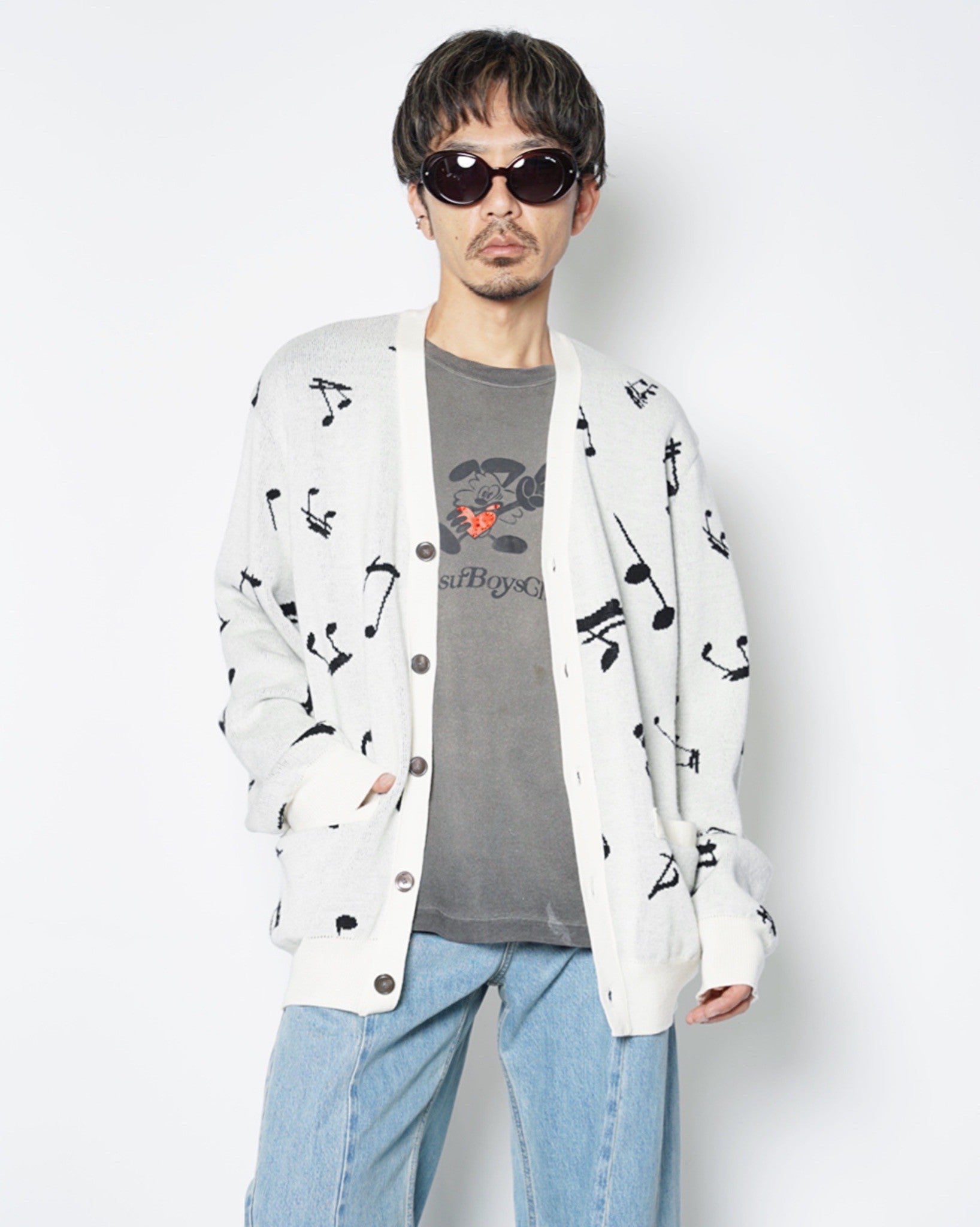 ・カルチャー色の強いデザインながらも、柔らかなニュアンスのニットカーディガンでスタイリングに落とし込みやすいテイストとなっています。