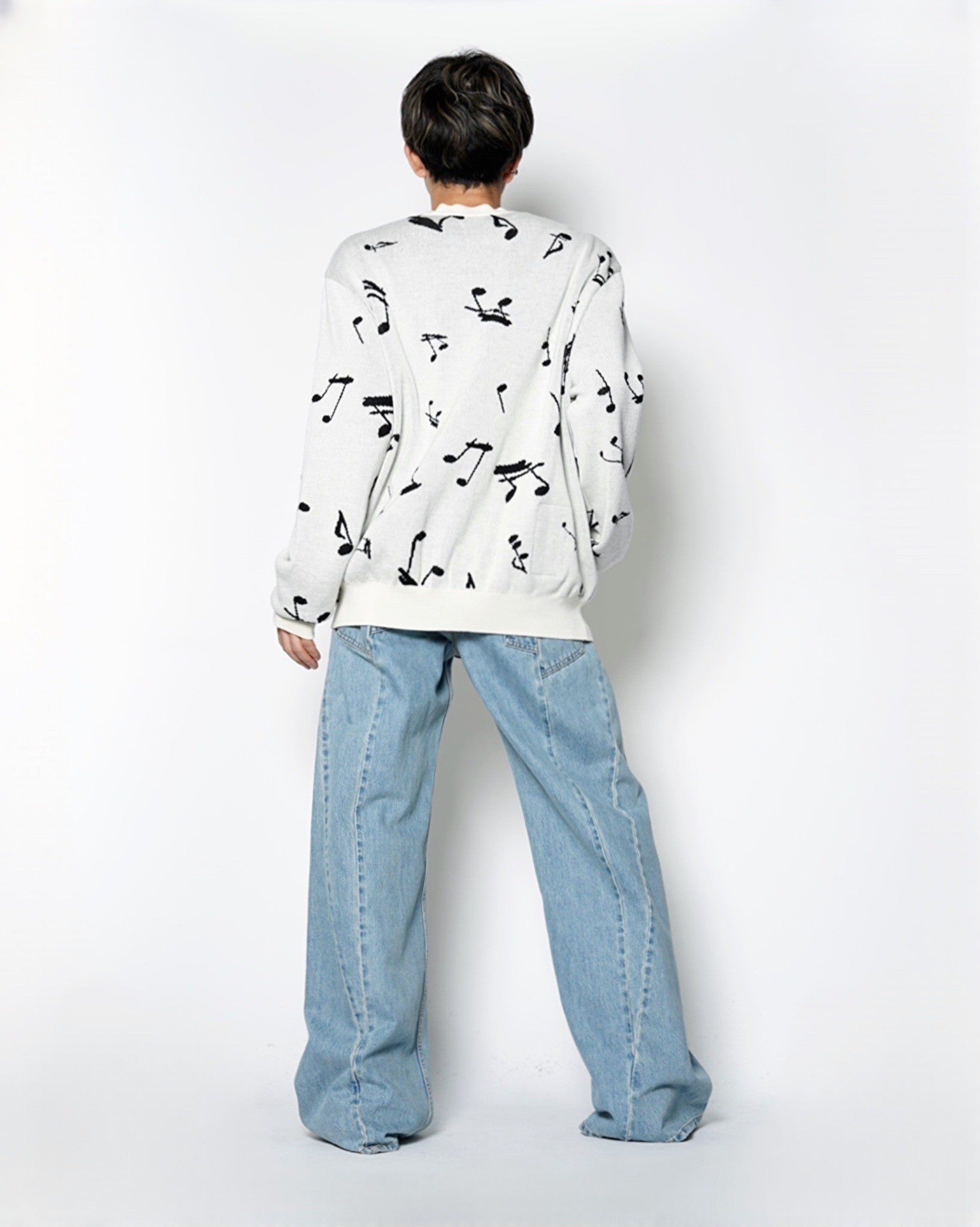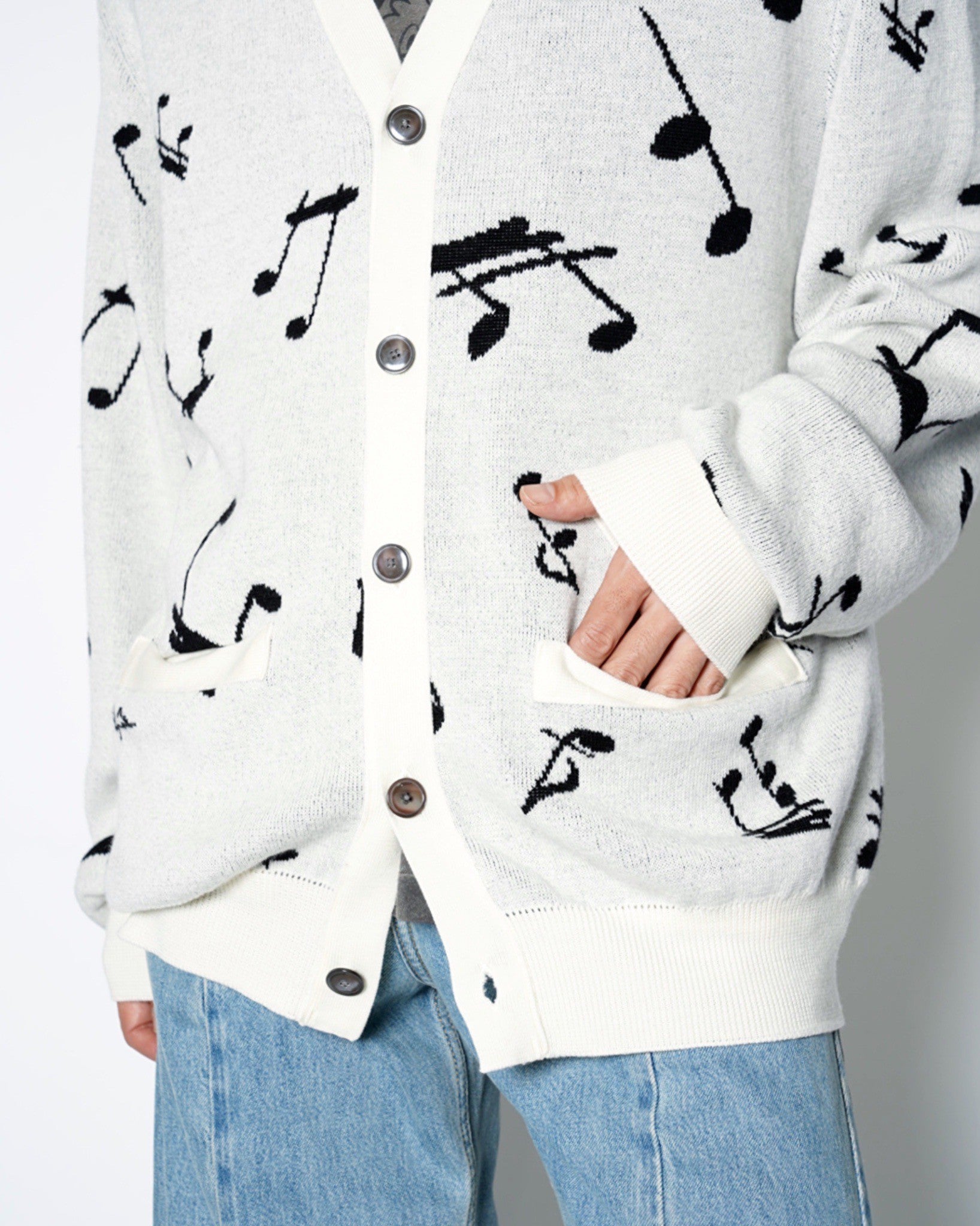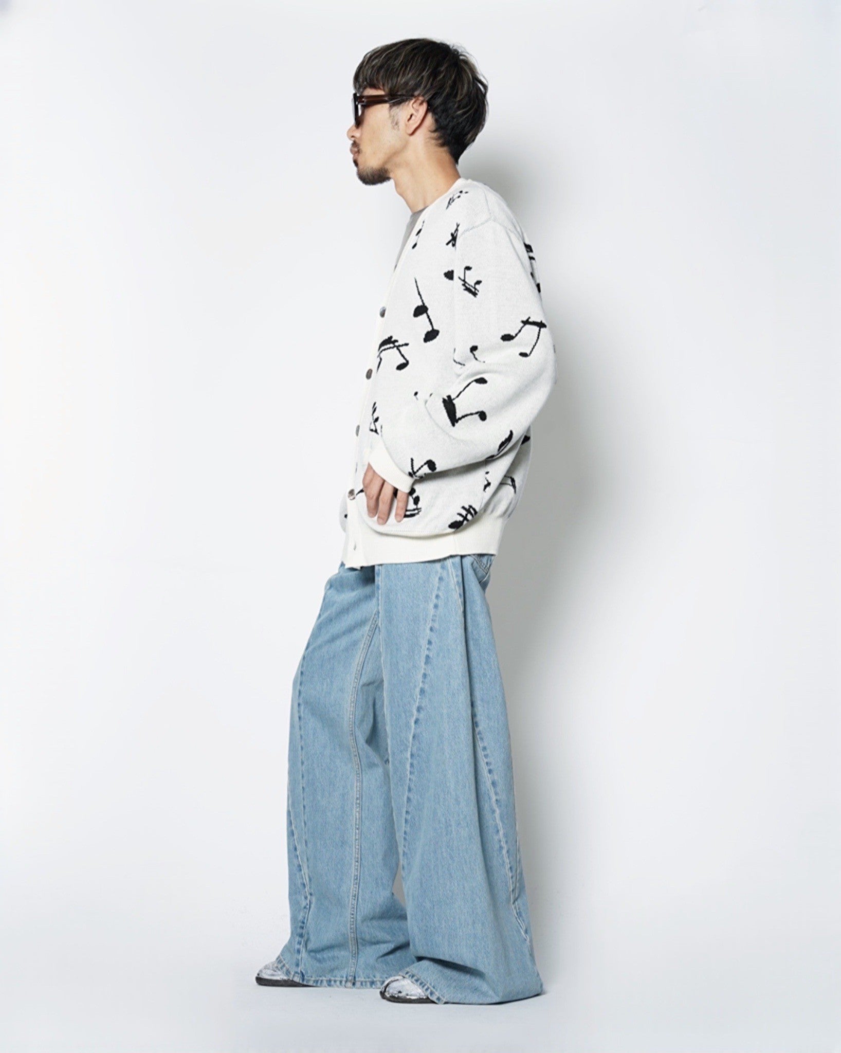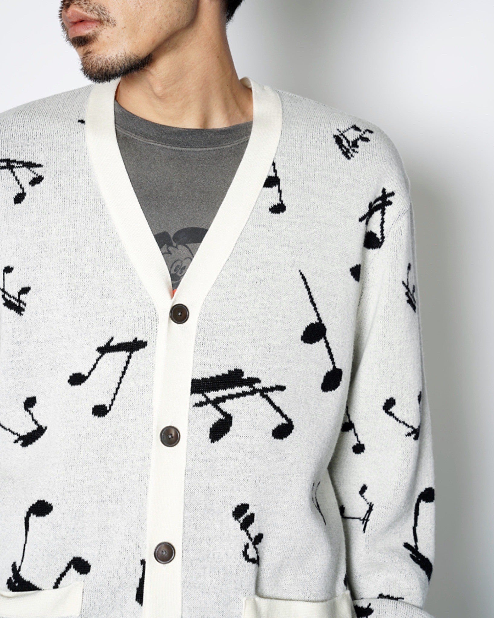 ・カルチャー色の強いデザインながらも、柔らかなニュアンスのニットカーディガンでスタイリングに落とし込みやすいテイストとなっています。