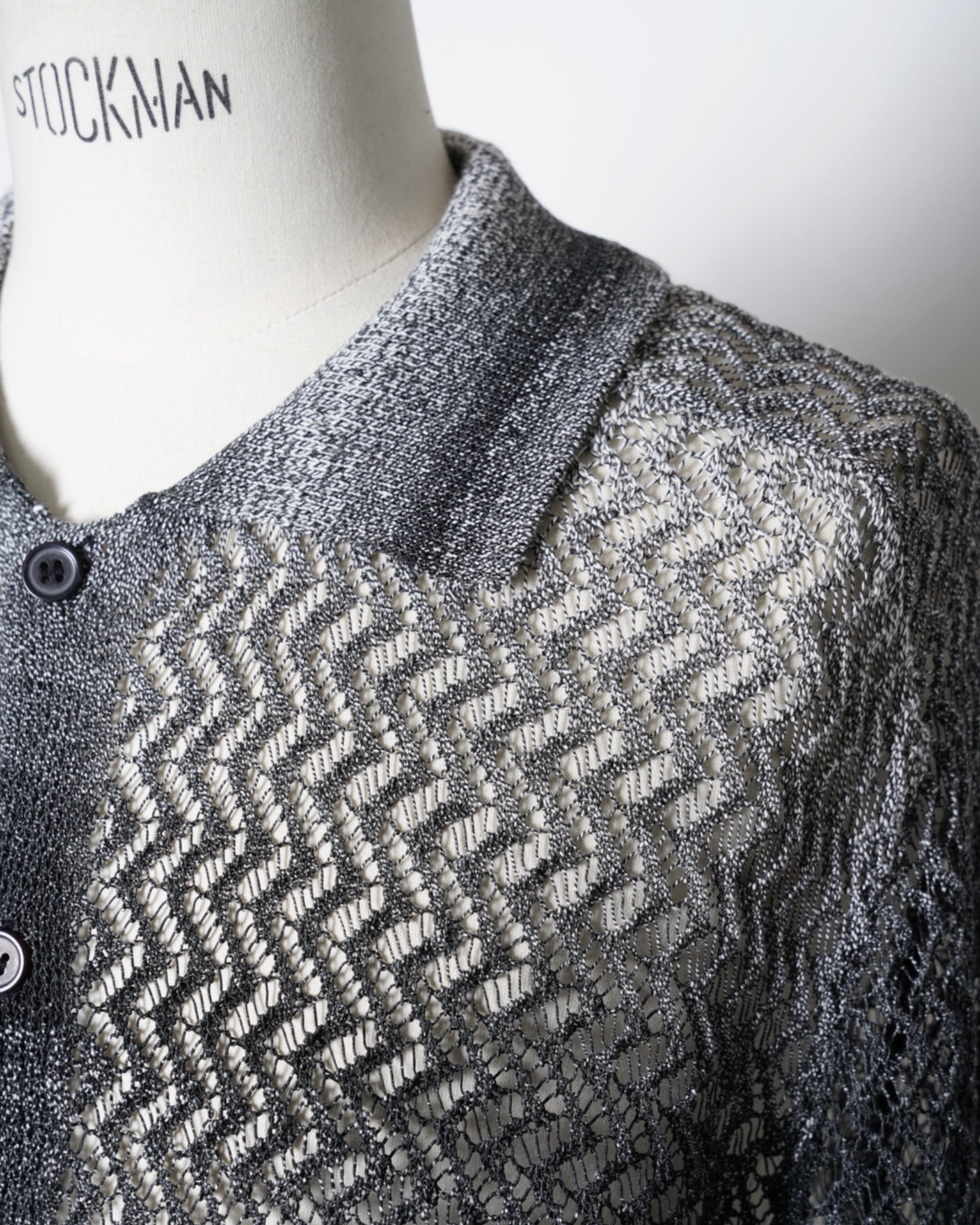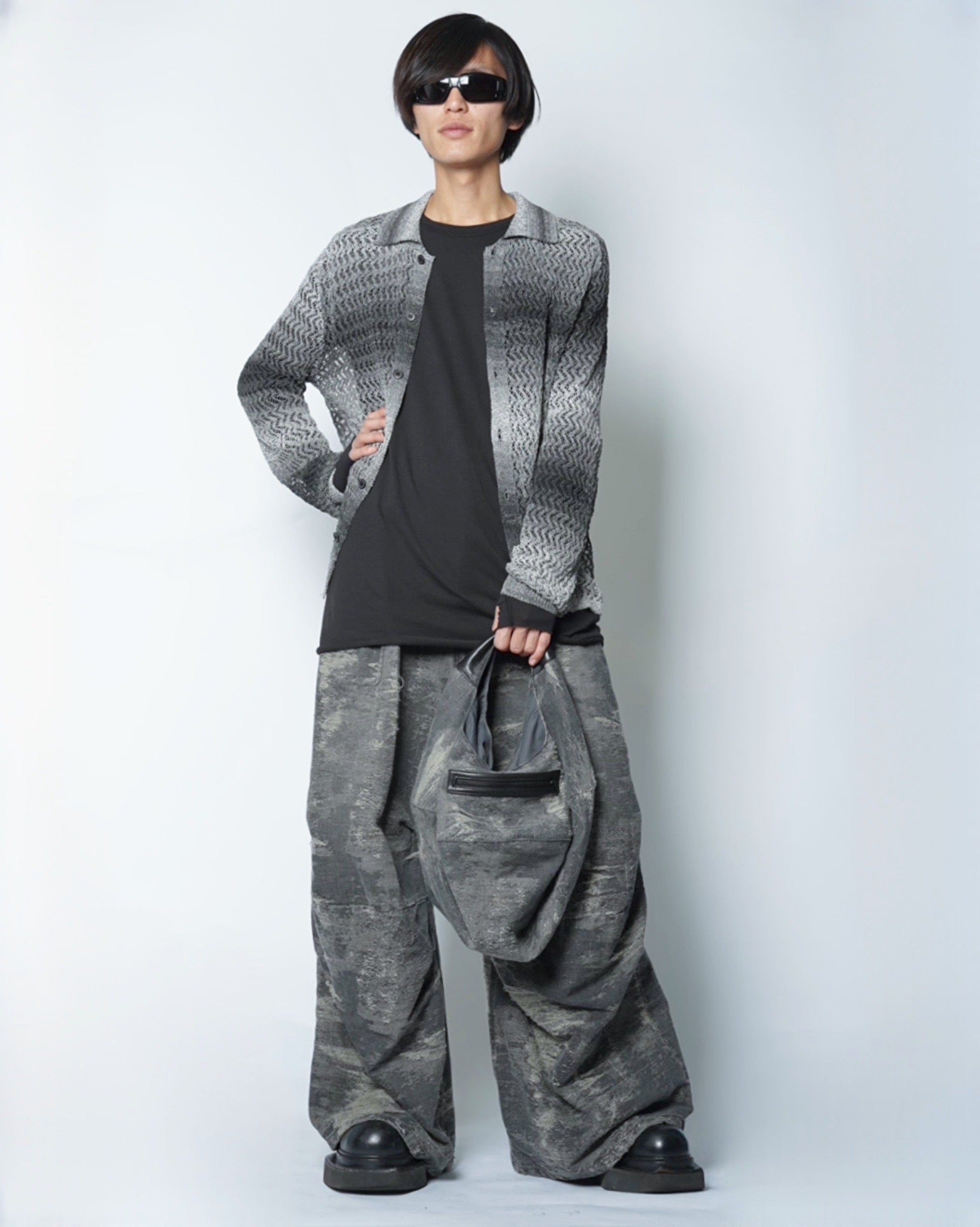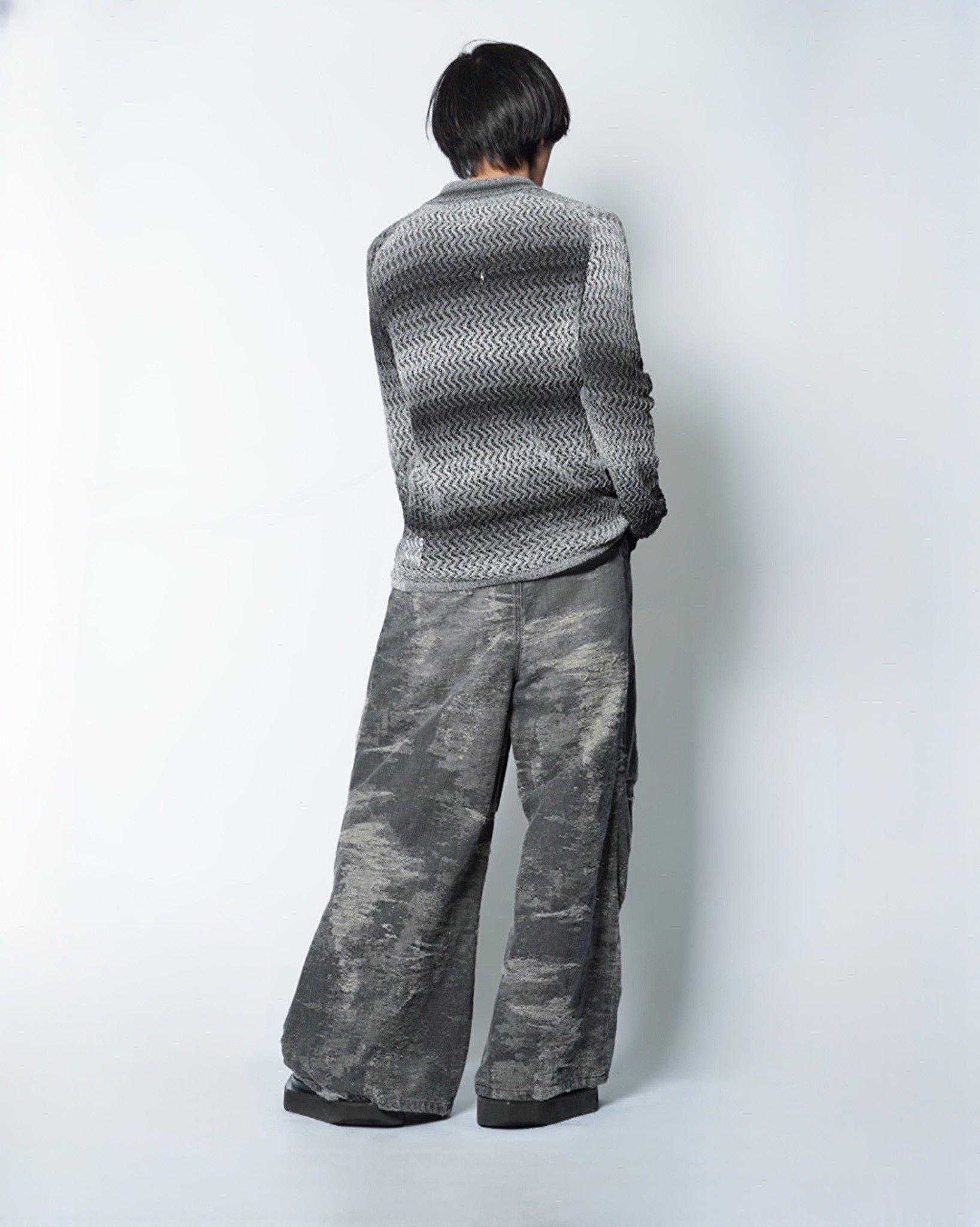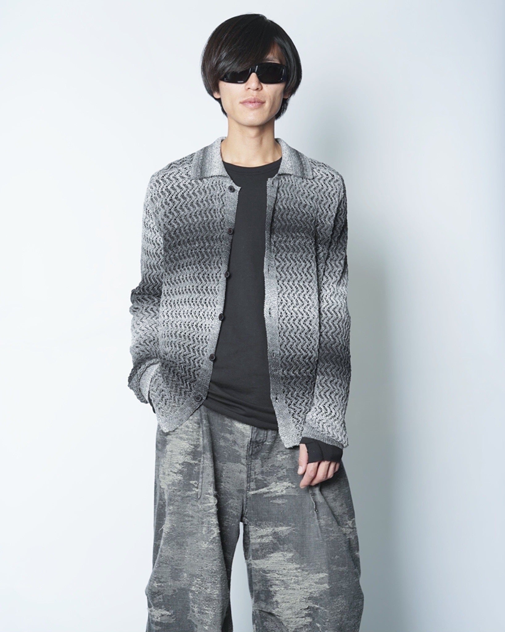・モザイクのような質感をニットで表現しており、TAAKKのテキスタイル技術が発揮されたアーティスティックなデザインです。