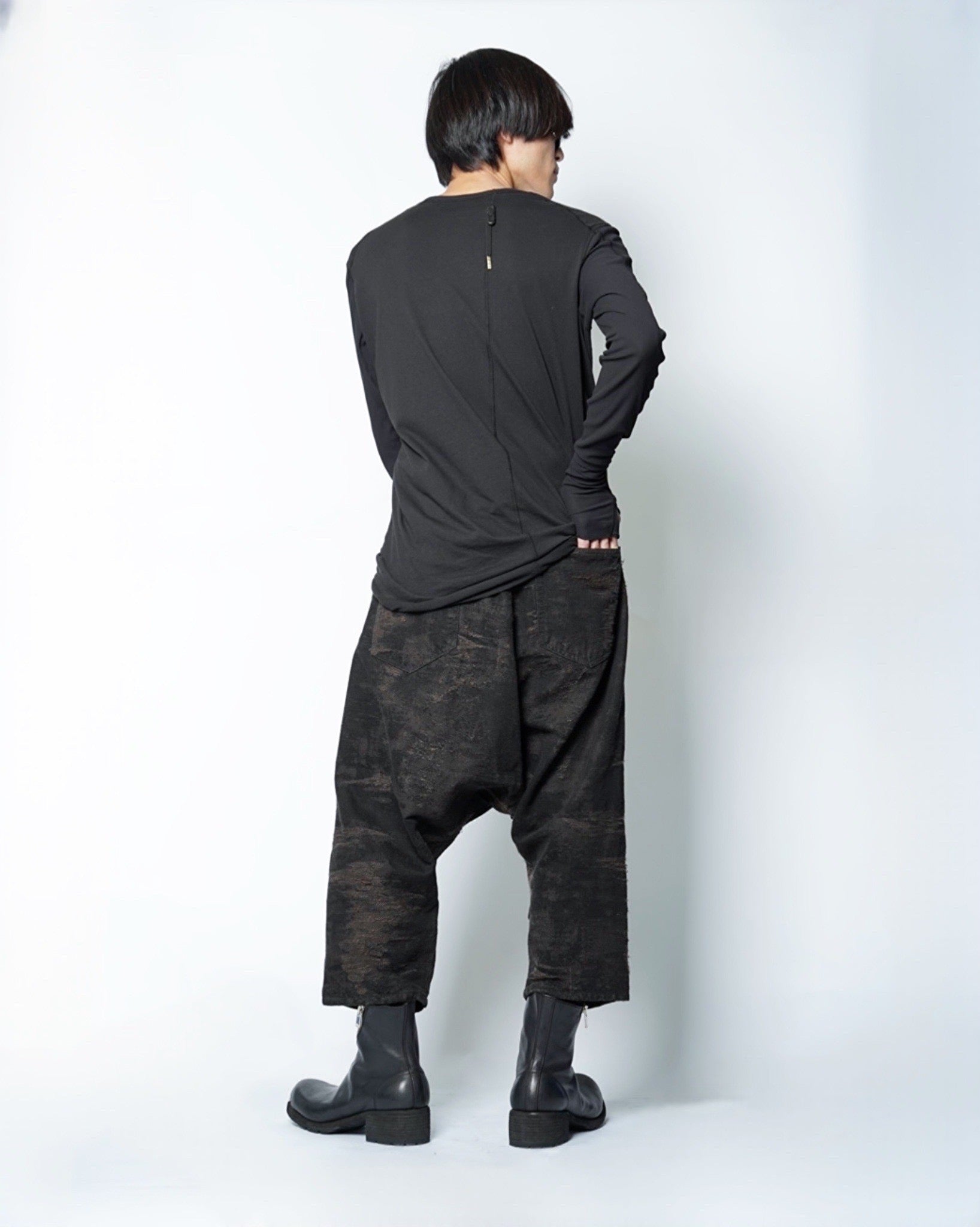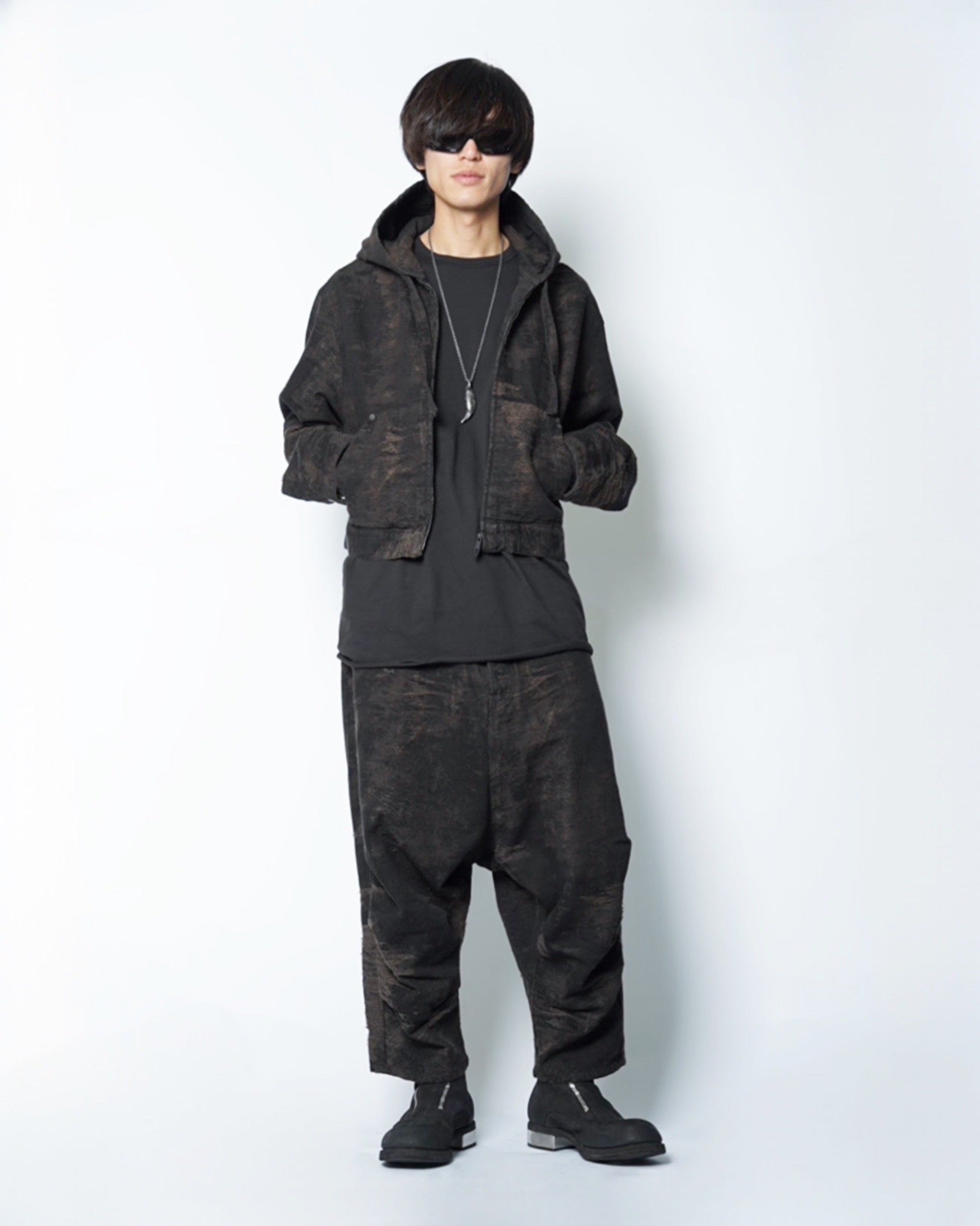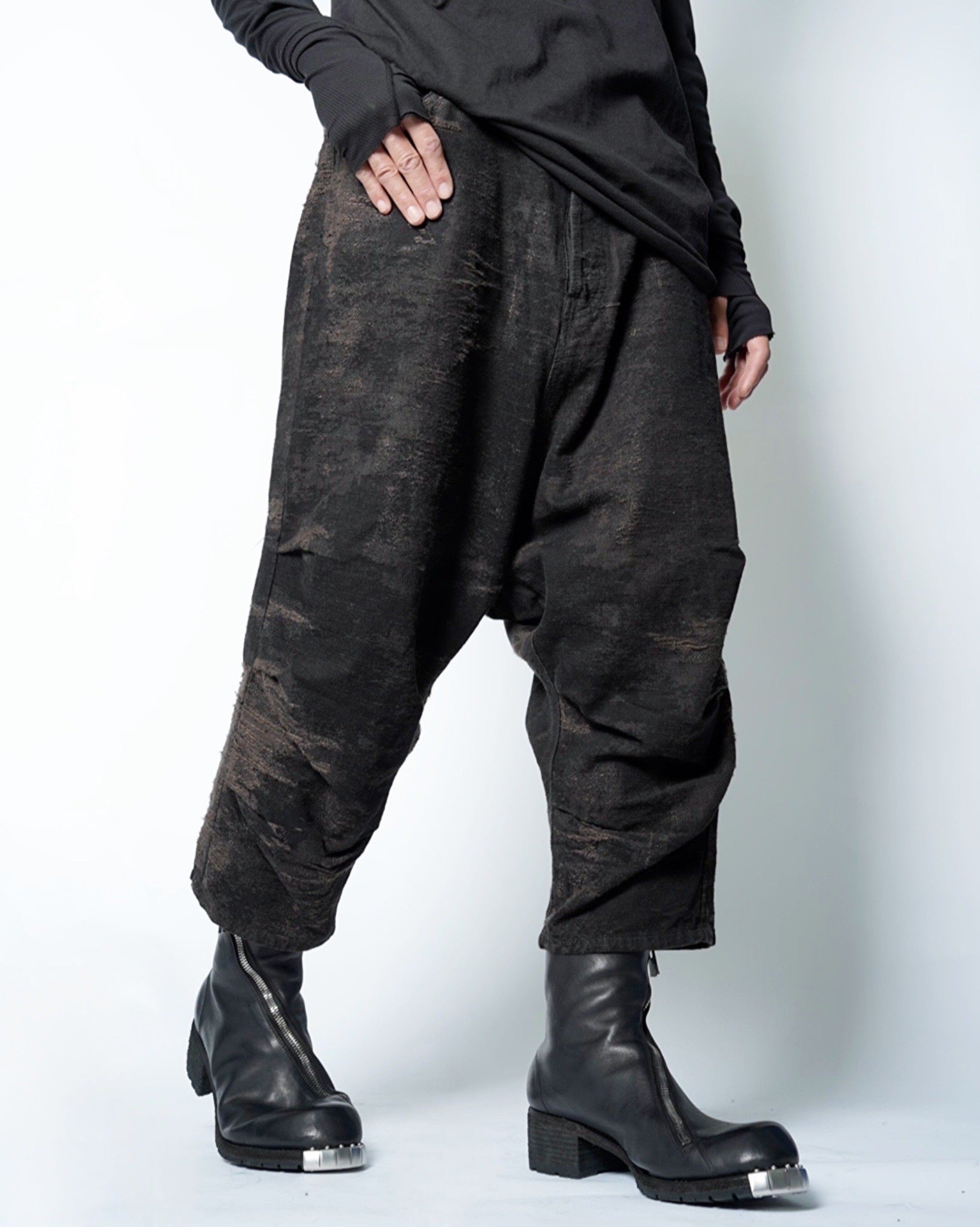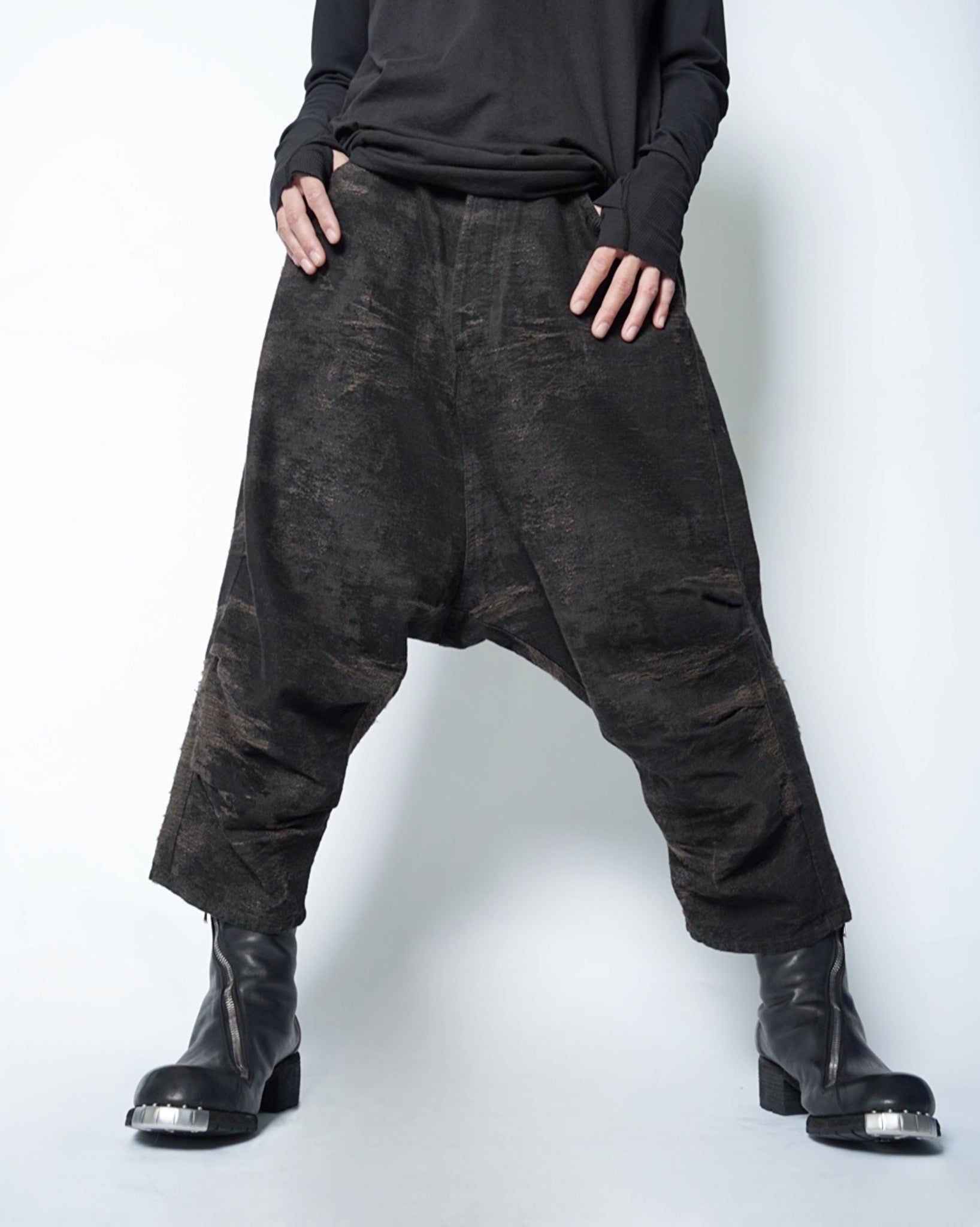 ・どこか緊張感のあるストリート感を放つサルエルパンツをハードなジャカードデニムで表現することで、ストイックな仕上がりの一本となっています。