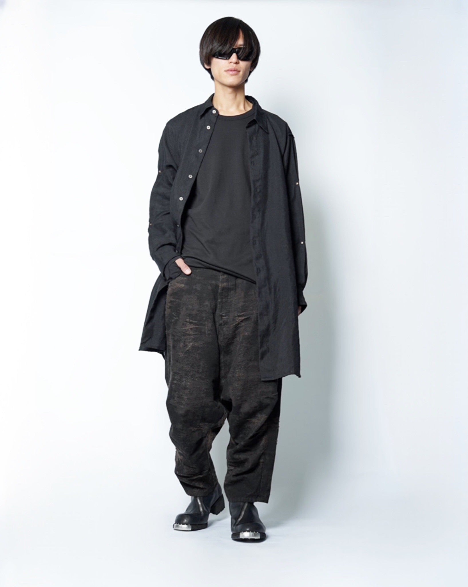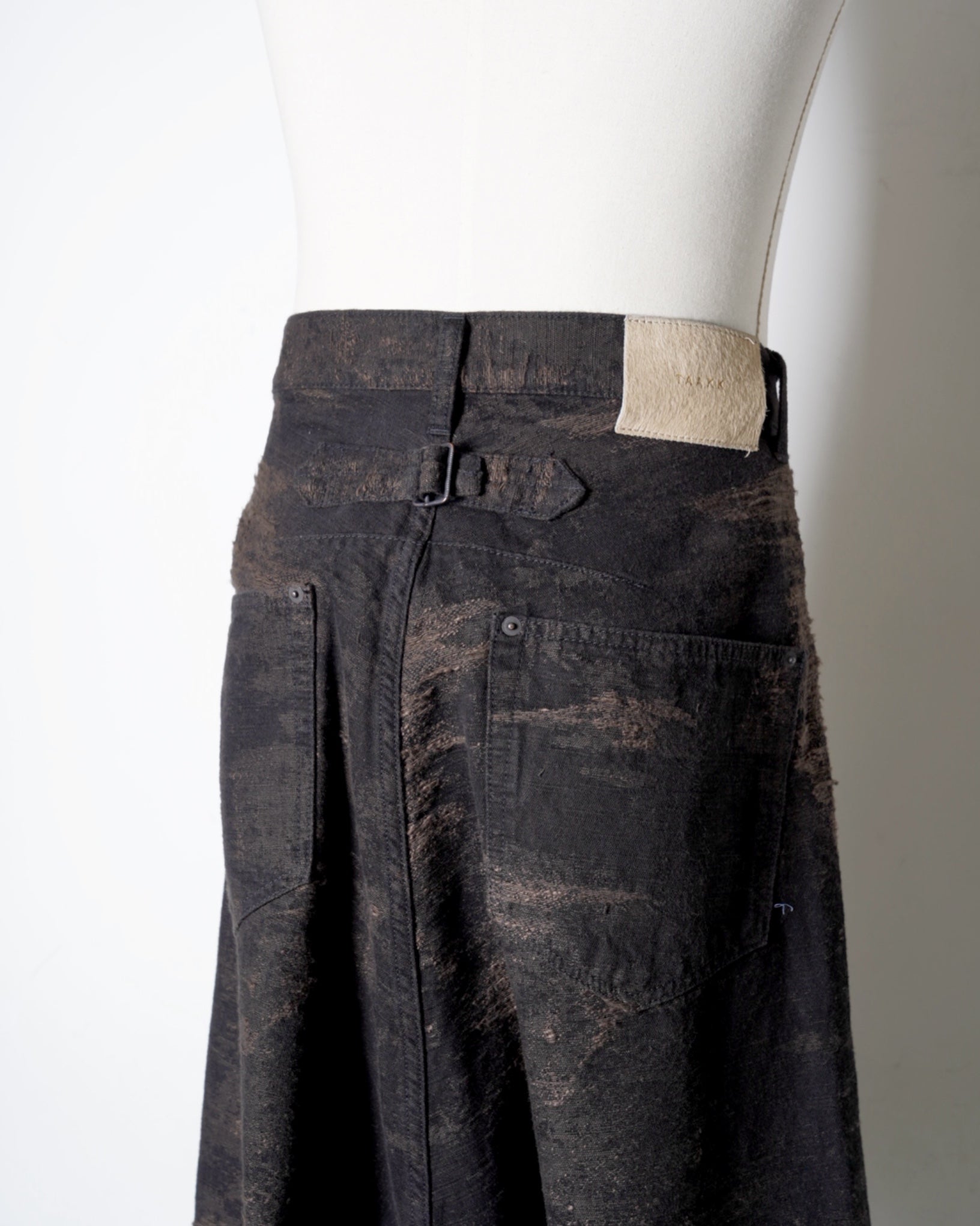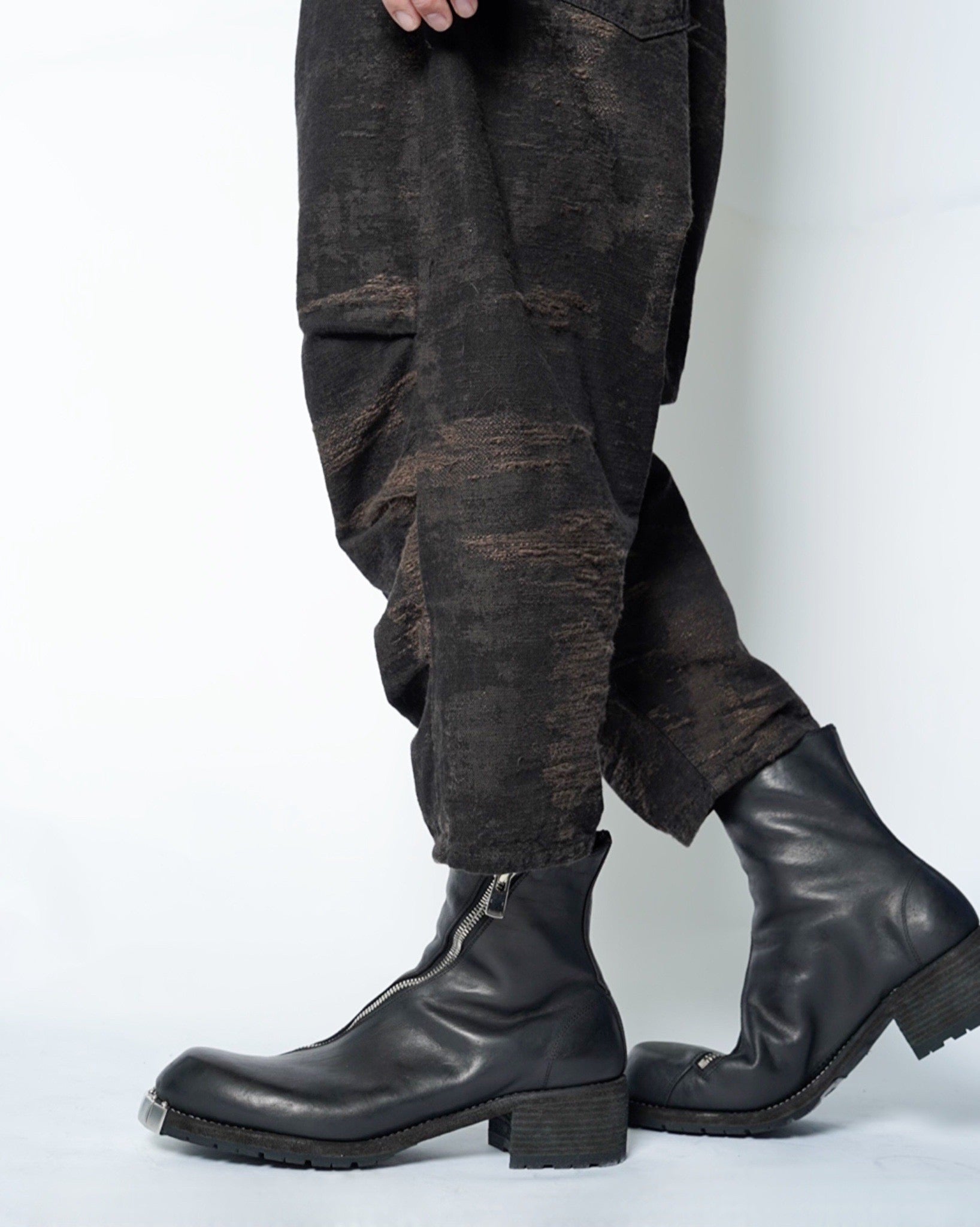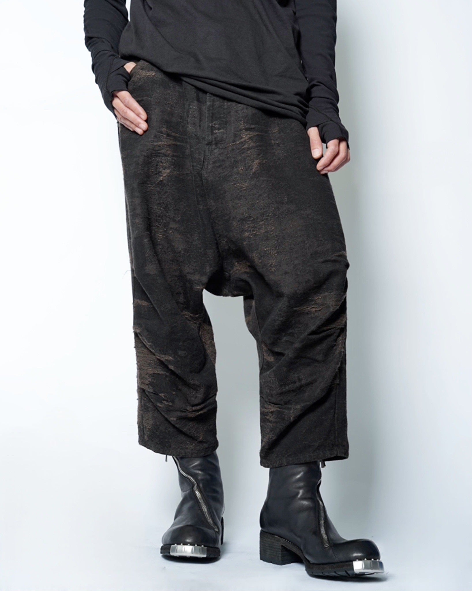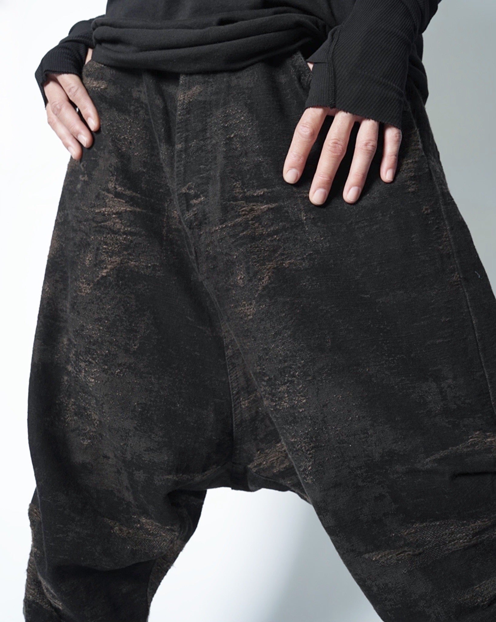 ・どこか緊張感のあるストリート感を放つサルエルパンツをハードなジャカードデニムで表現することで、ストイックな仕上がりの一本となっています。