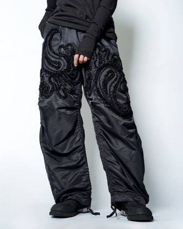 SCULPTURAL EMBROIDERY NYLON PARACHUTE PANTS