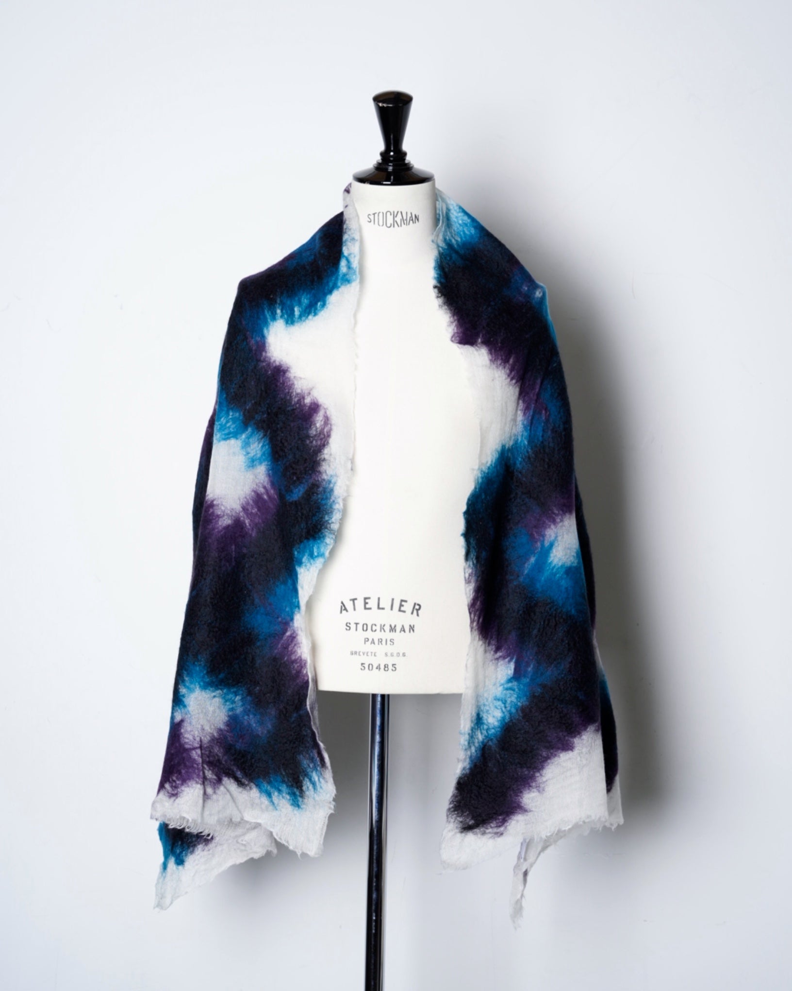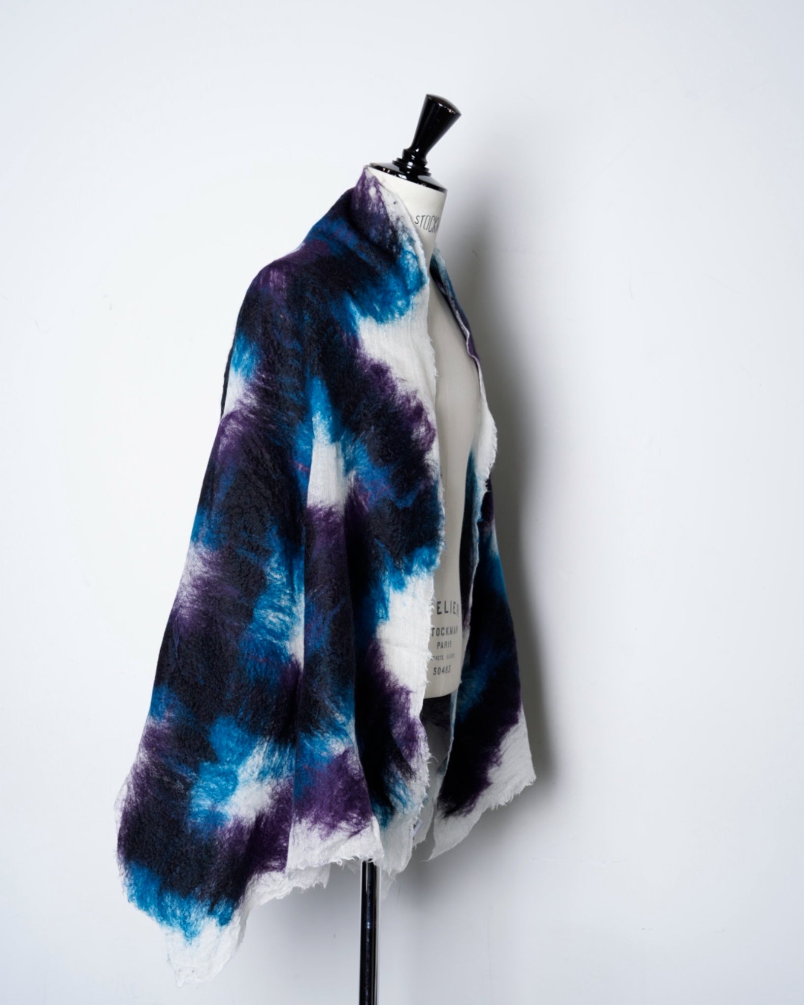 贅を尽くした素材により、ストールの域を超え、そしてフェルトとは思えない驚きの質感と絵画のような色柄をお楽しみくださいませ。