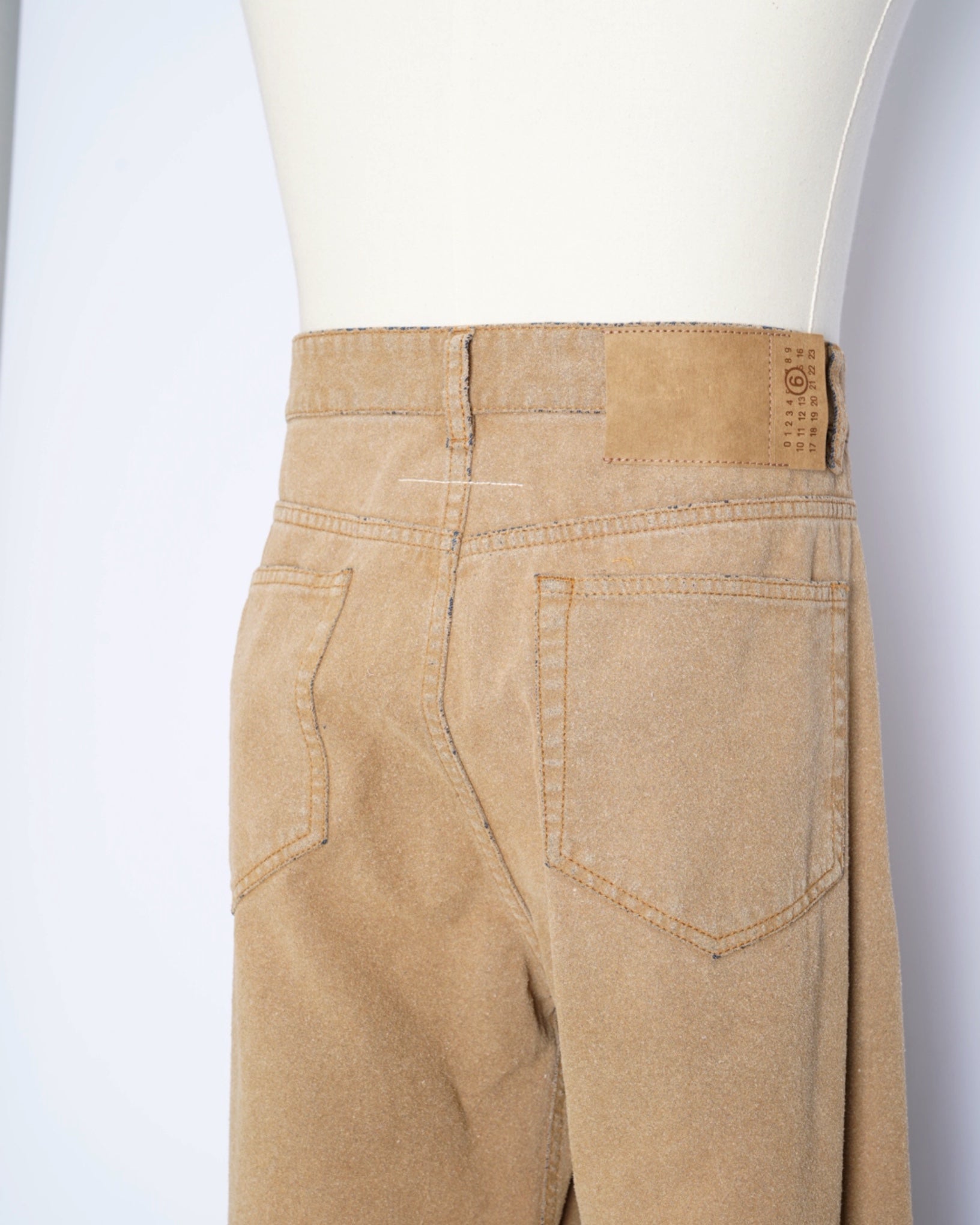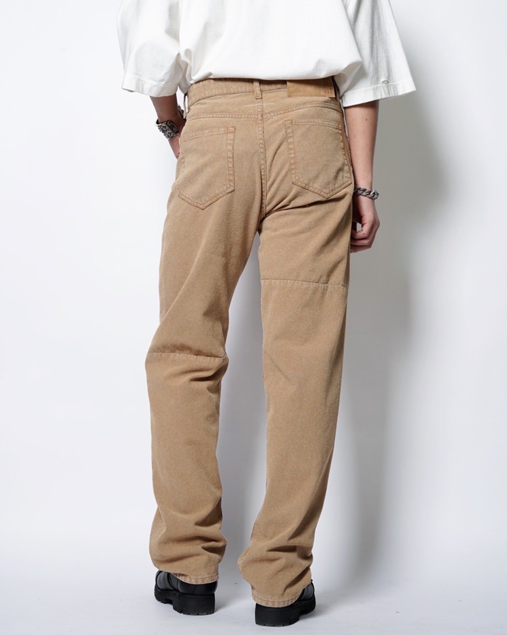 ・デニムパンツとスウェードのレザーパンツが合わさったようで、どこかノスタルジックでアメリカナイズな仕上がりとなっており、マルタンマルジェラ期のメゾンマルジェラにありそうなデザインに。