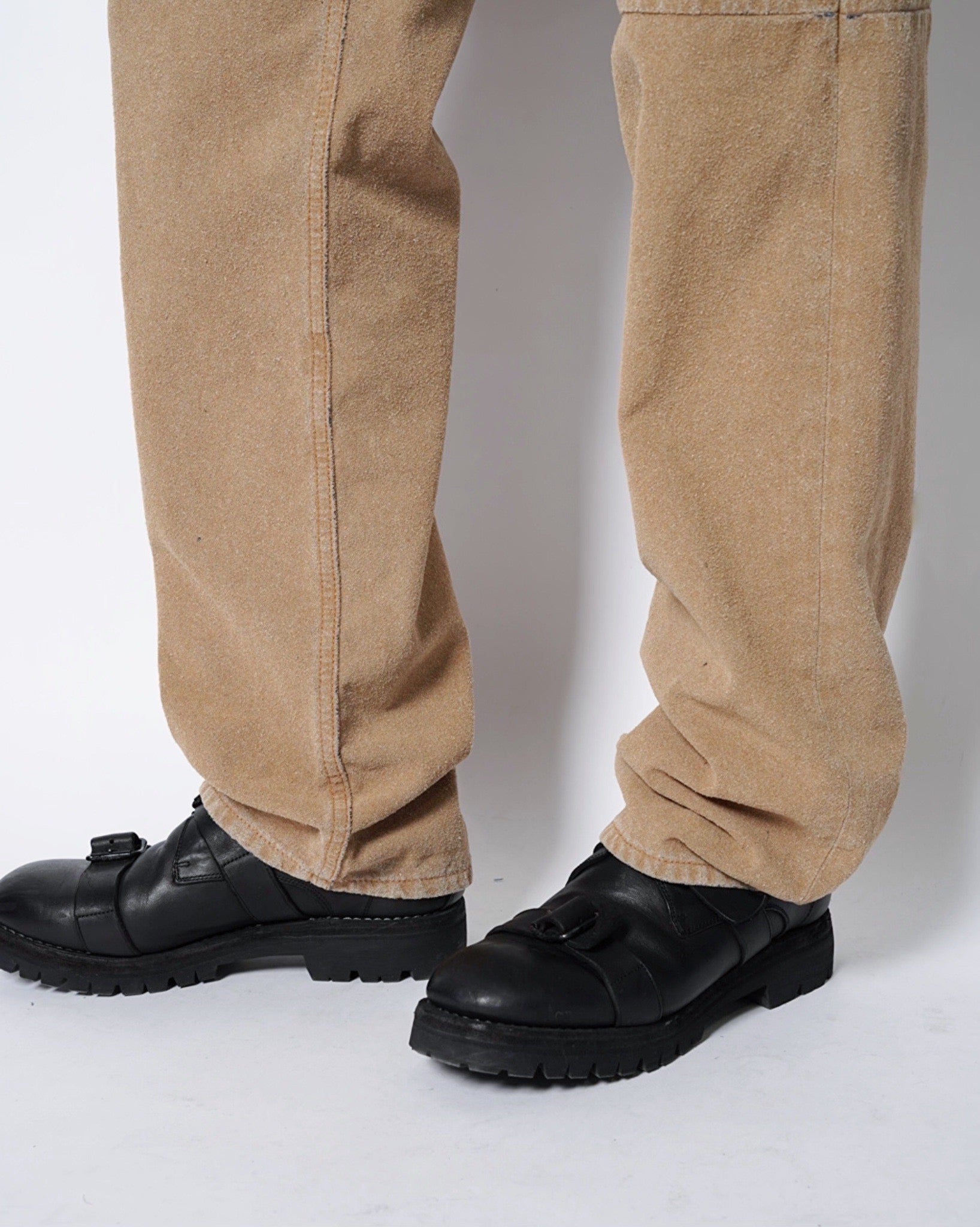 ・デニムパンツの上にスウェードタッチな表面加工を施した、特異的な一本。