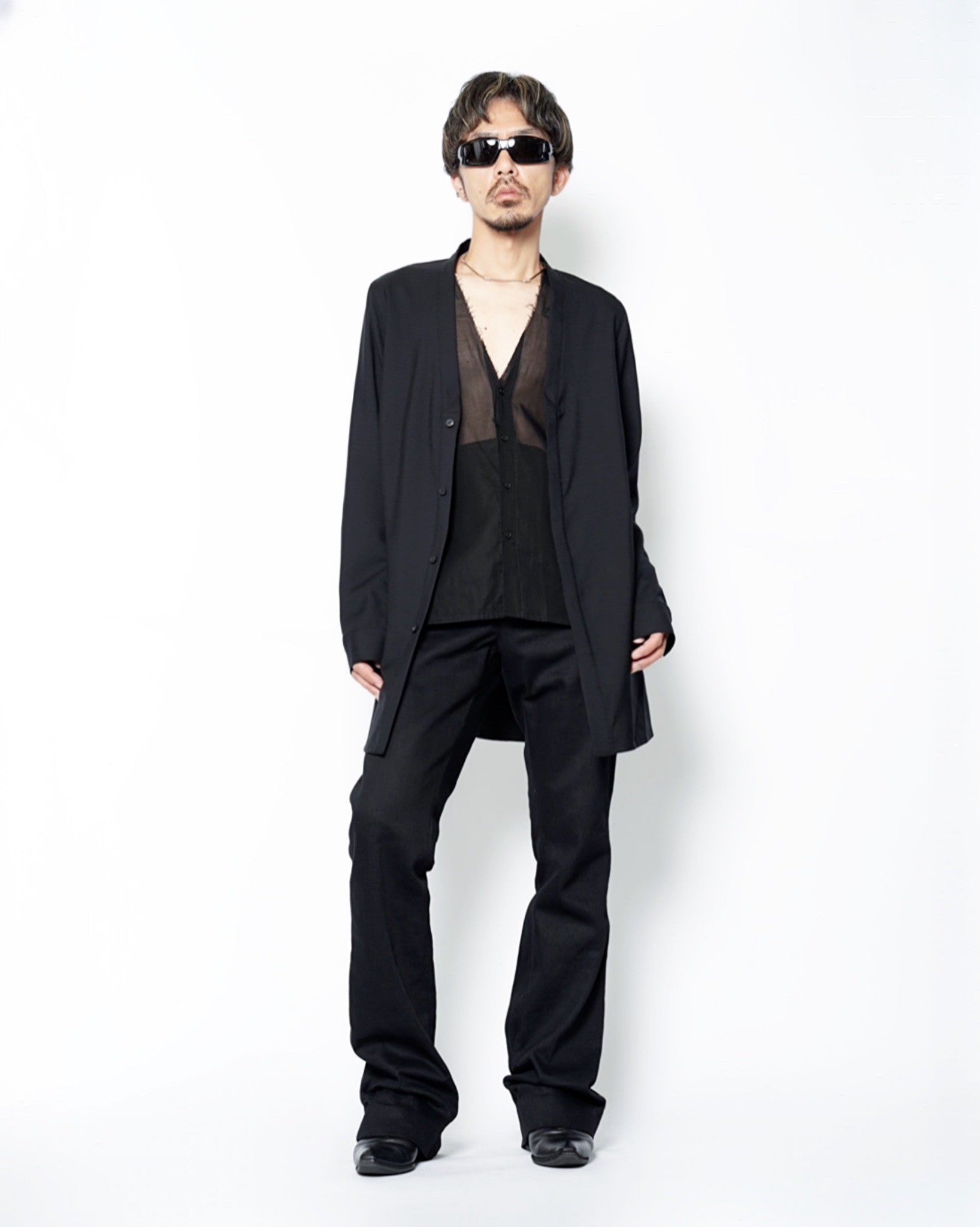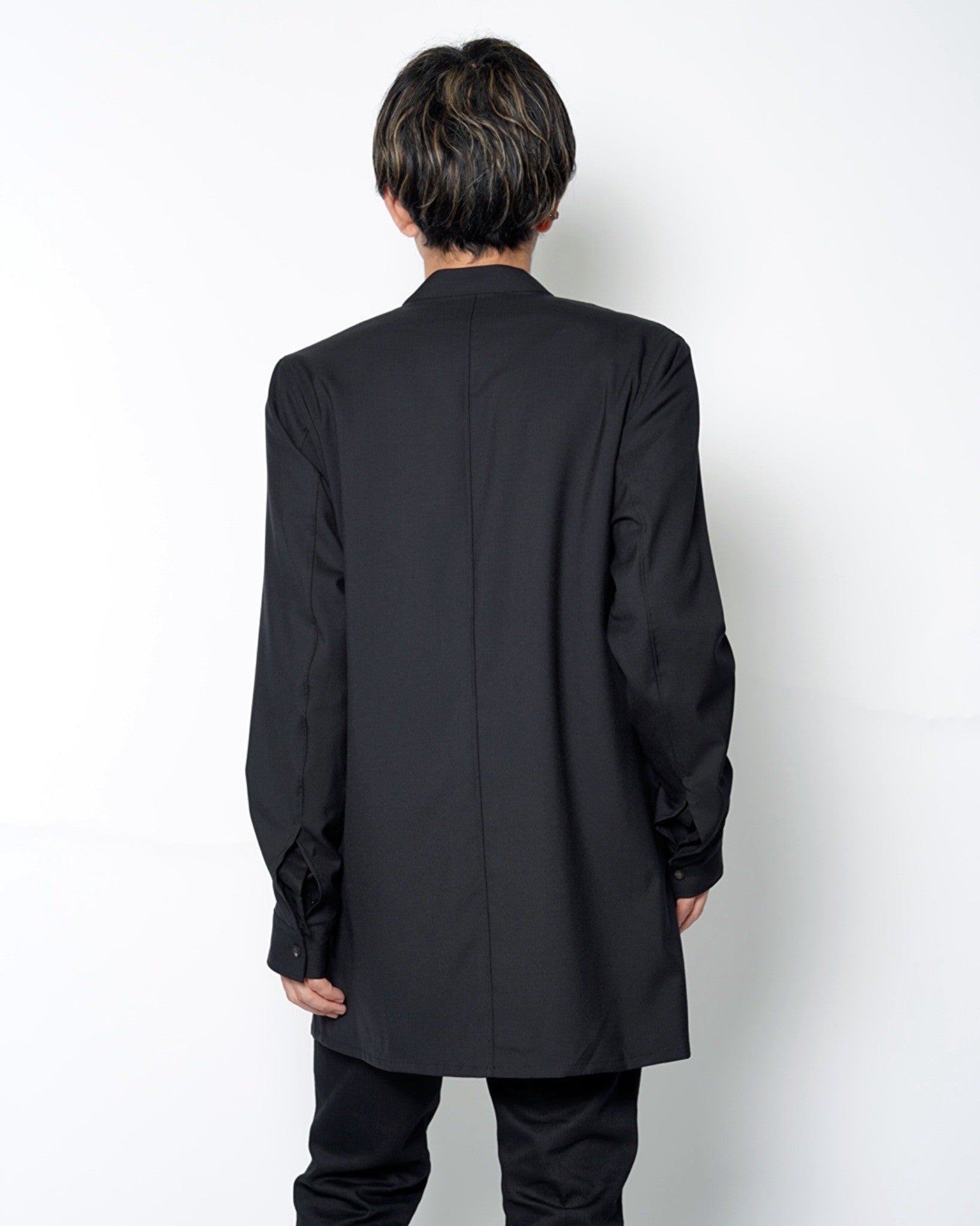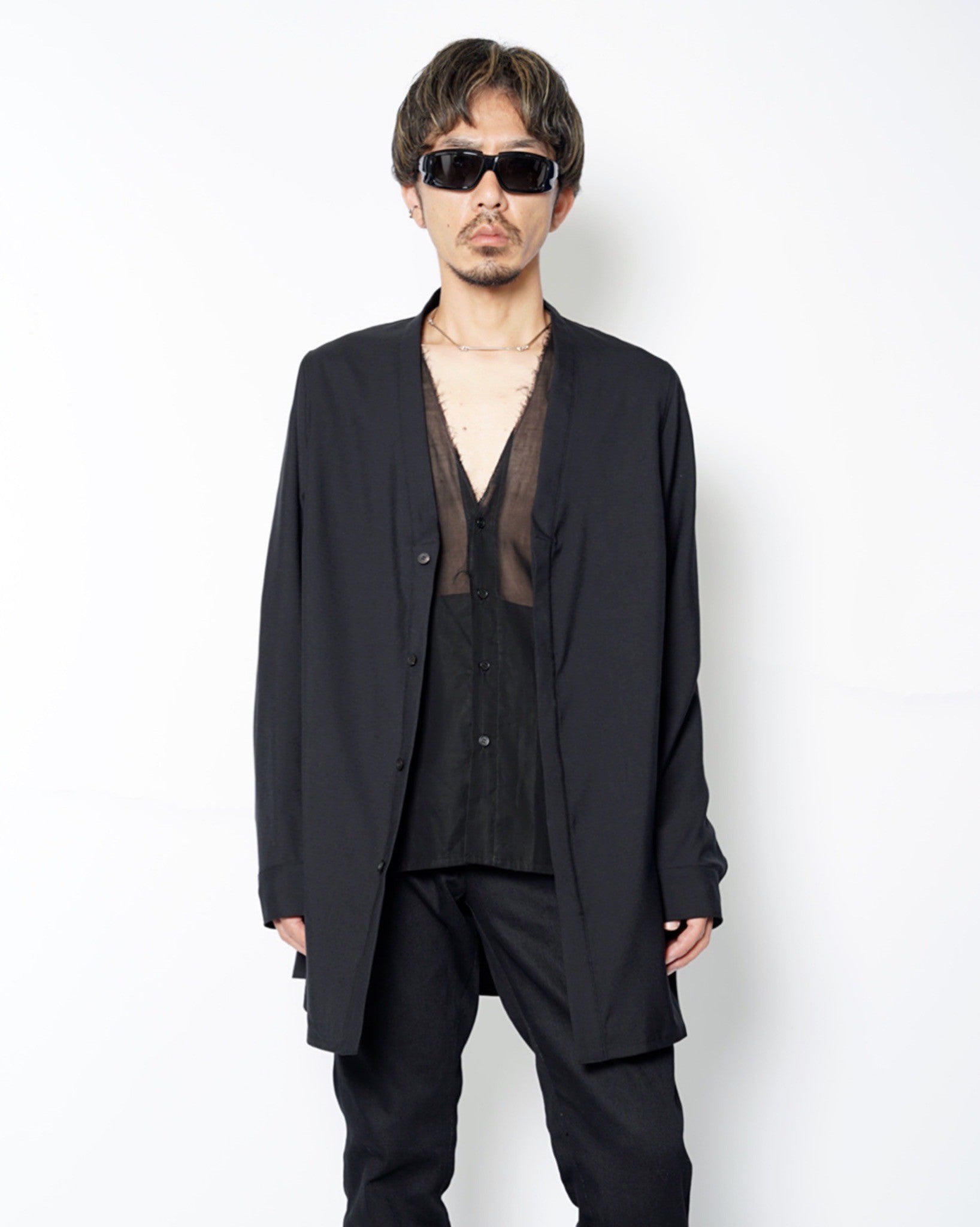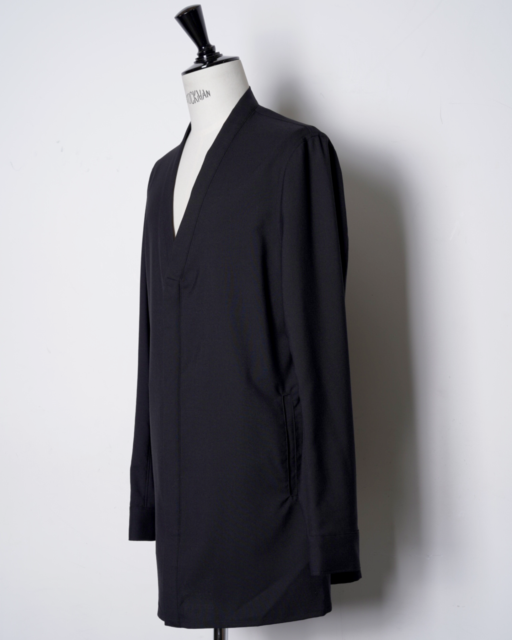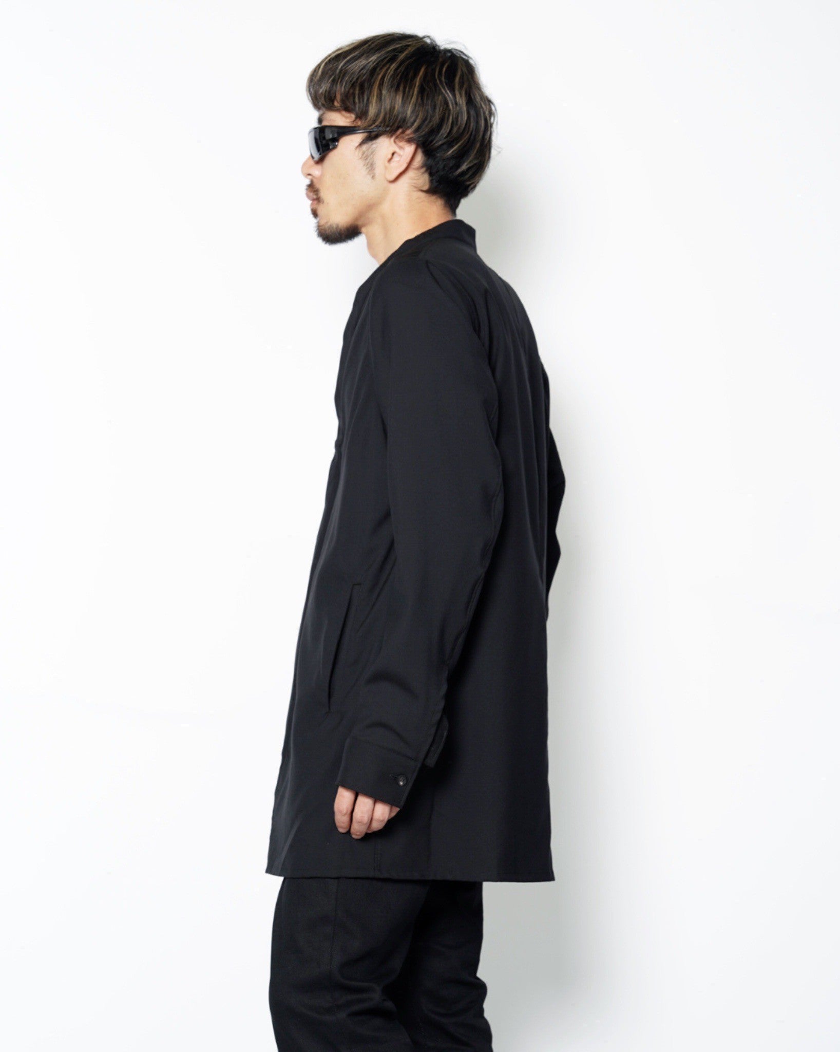 ・シャツとしては長めの丈感となっており、生地の落ち感が活きることで美しい縦のラインを描きます。
