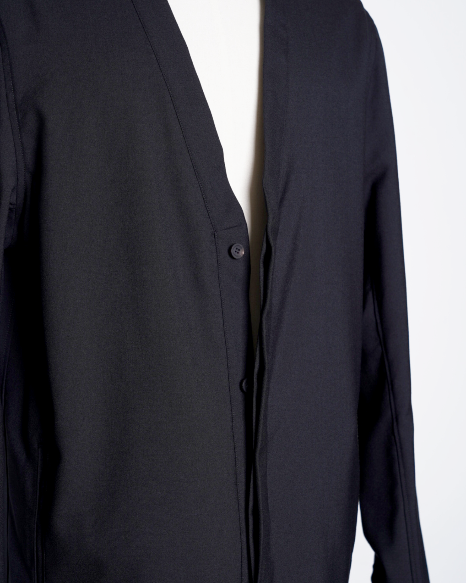 ・比翼の前立て、2枚袖、両サイドのポケットにより、シャツながらもジャケットのような仕上がりとなっており、軽やかさの中にも端正な表情を持ったデザインに。