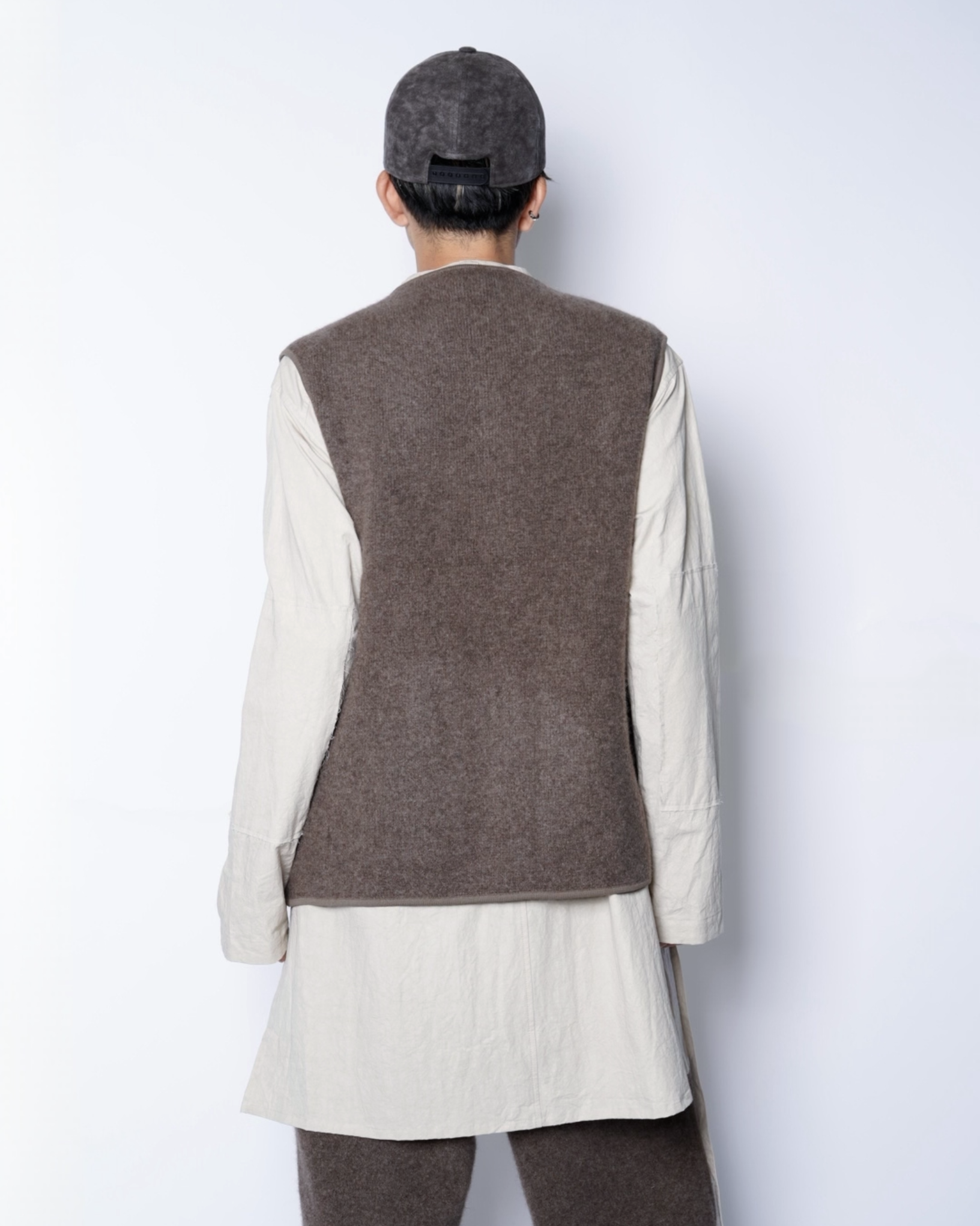 ・walenodeの代名詞である、"イノセントヤク"の上質な質感がしっかりと活きるように、ベーシックなベストの意匠で構築。