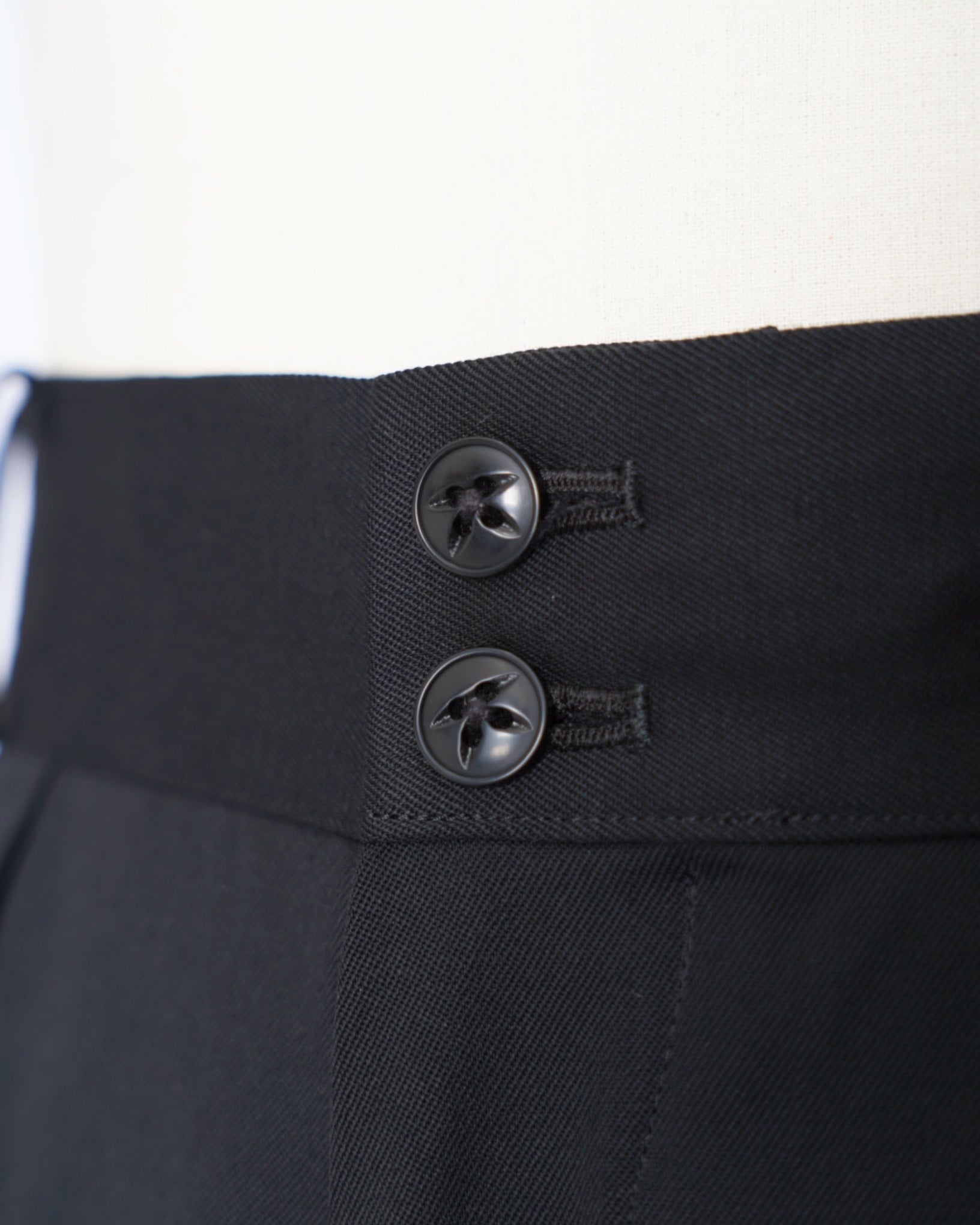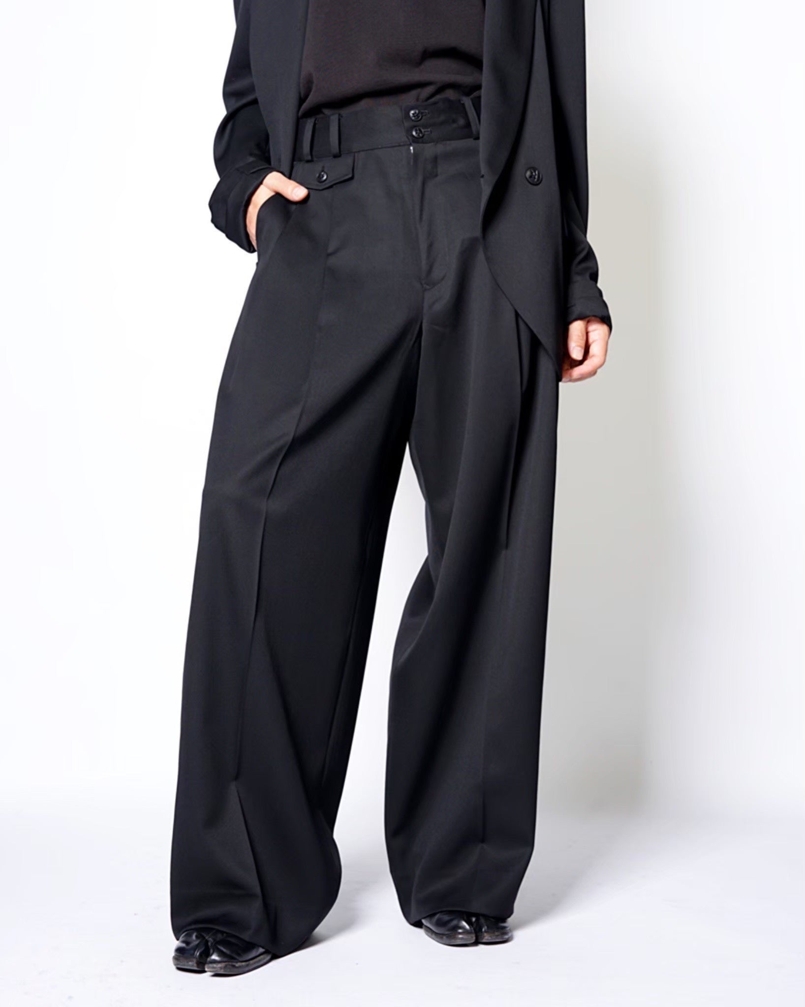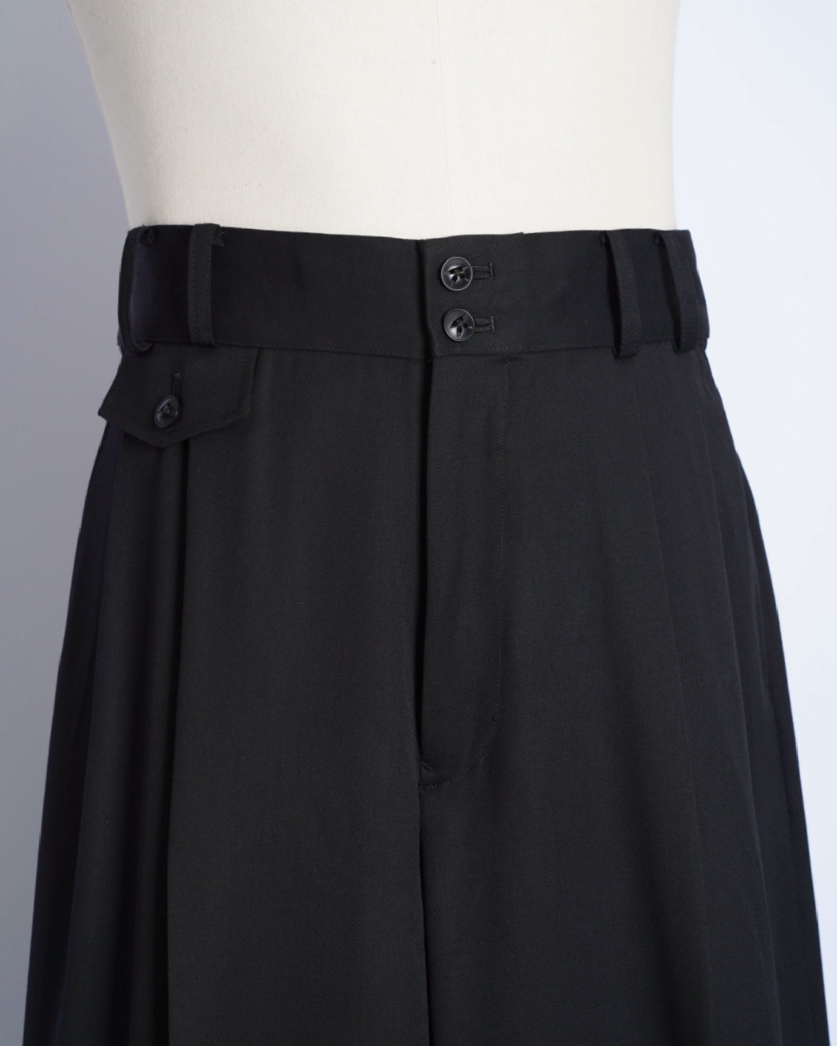 ・程よくゆとりのある股上と深い2タックにより上質なウールギャバジンのドレープが非常に際立っており、端正でエレガントな一本に。