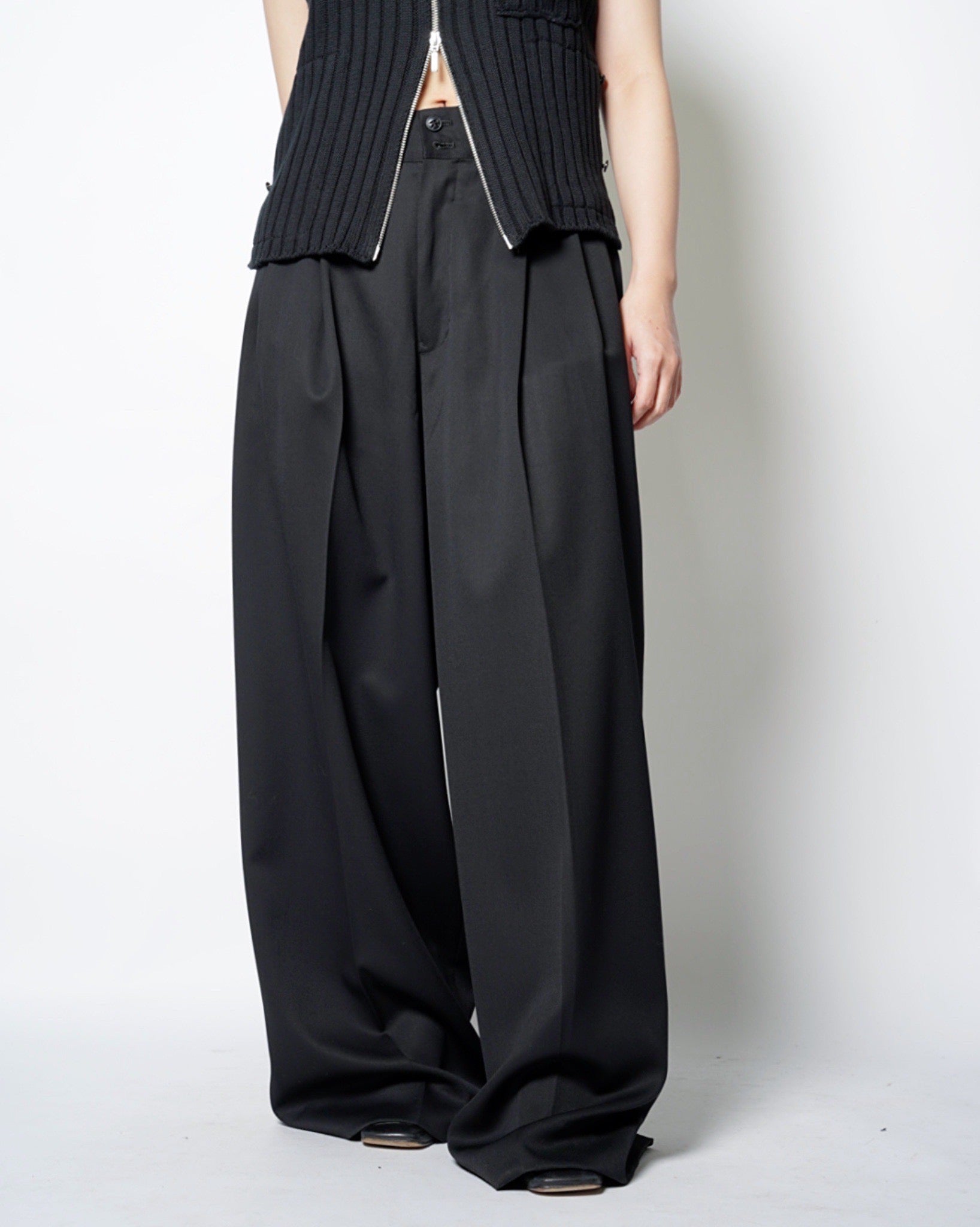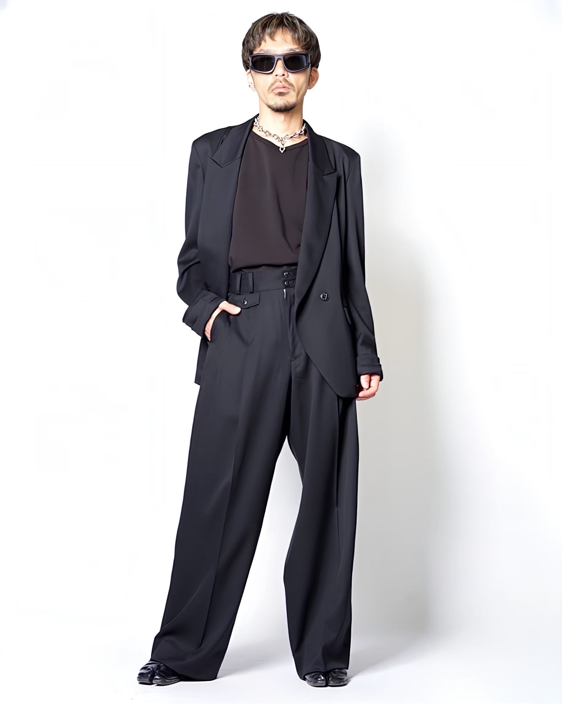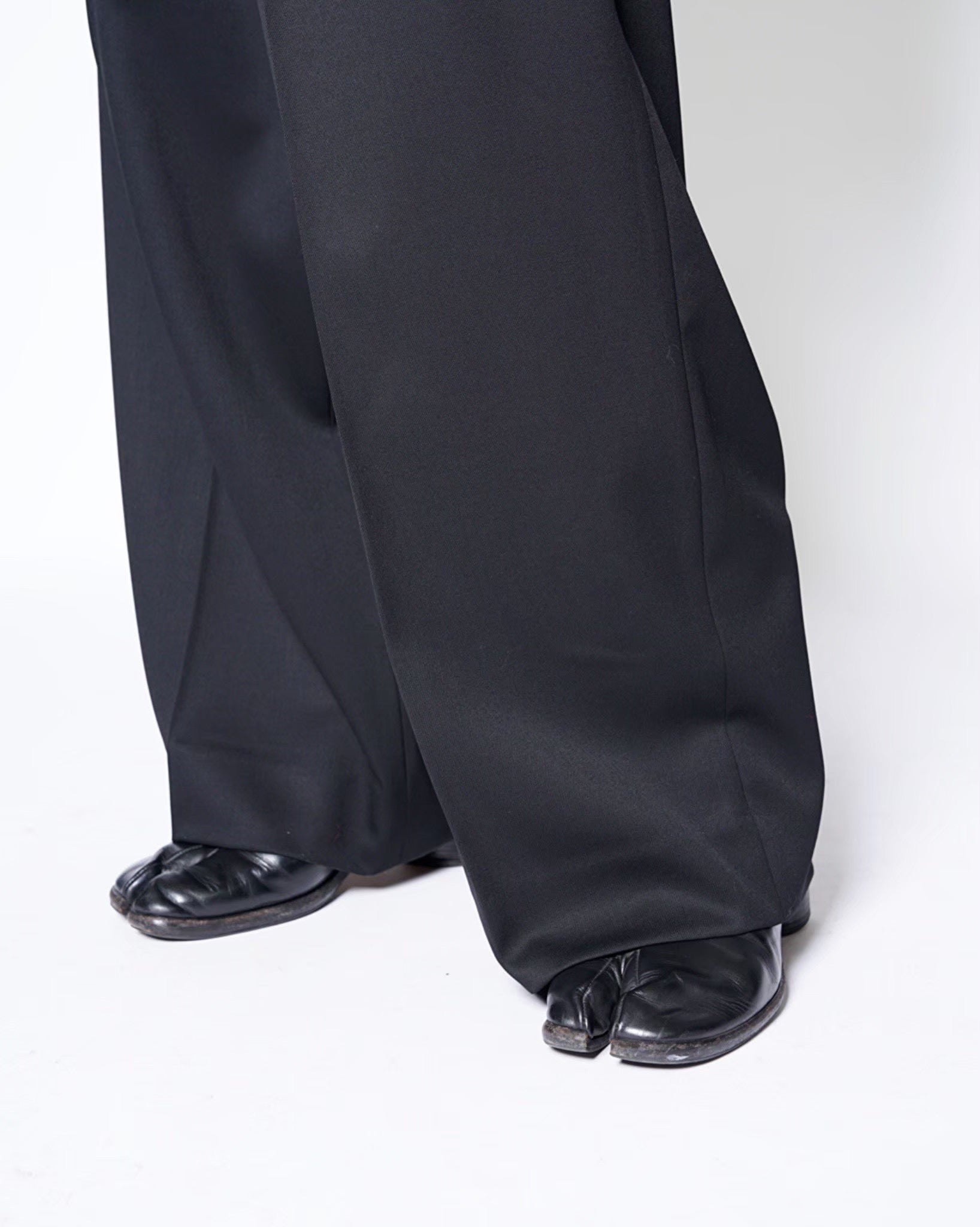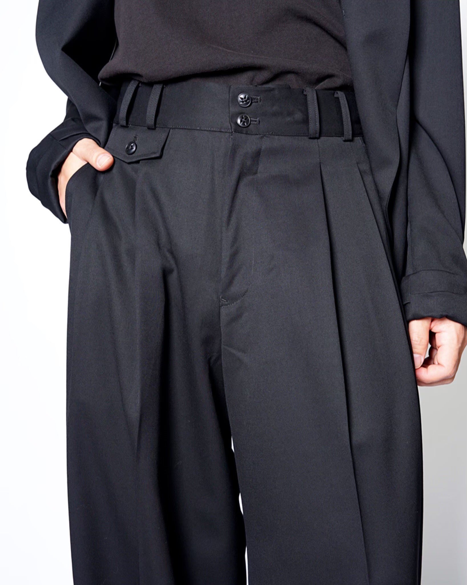 ・程よくゆとりのある股上と深い2タックにより上質なウールギャバジンのドレープが非常に際立っており、端正でエレガントな一本に。