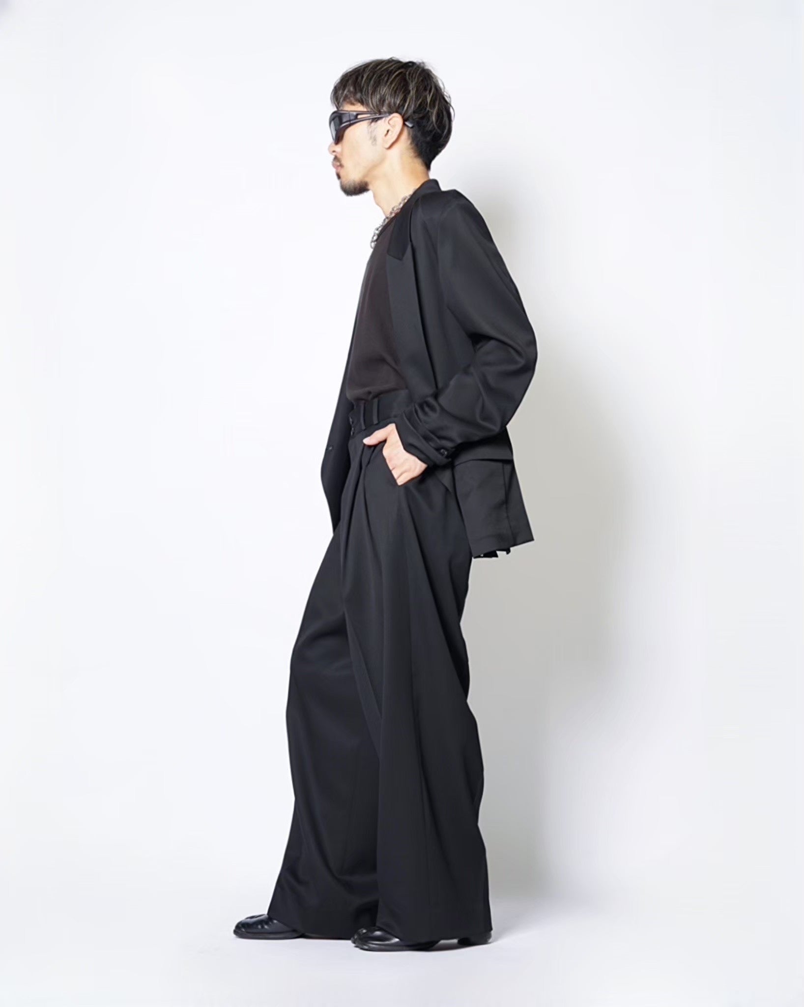 ・深い腰周りから緩やかなテーパードがかかり、リラックス感と端正さを両立したシルエットに。