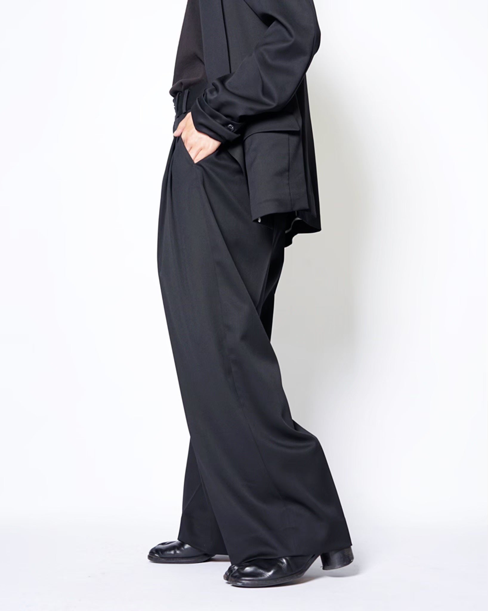 ・ウールギャバジンの美しいドレープが引き立つ、エレガントなトラウザー。