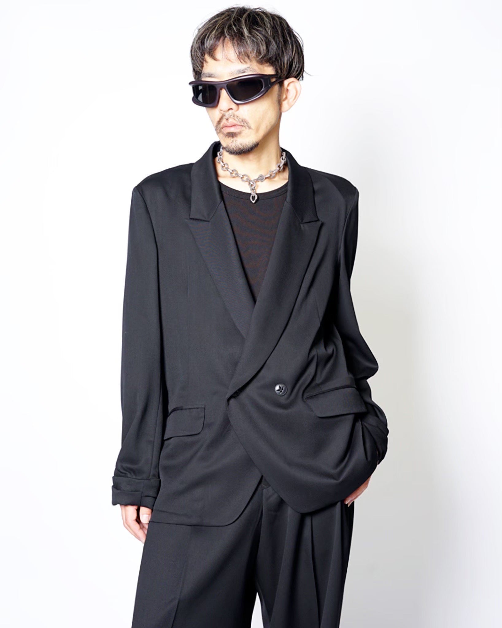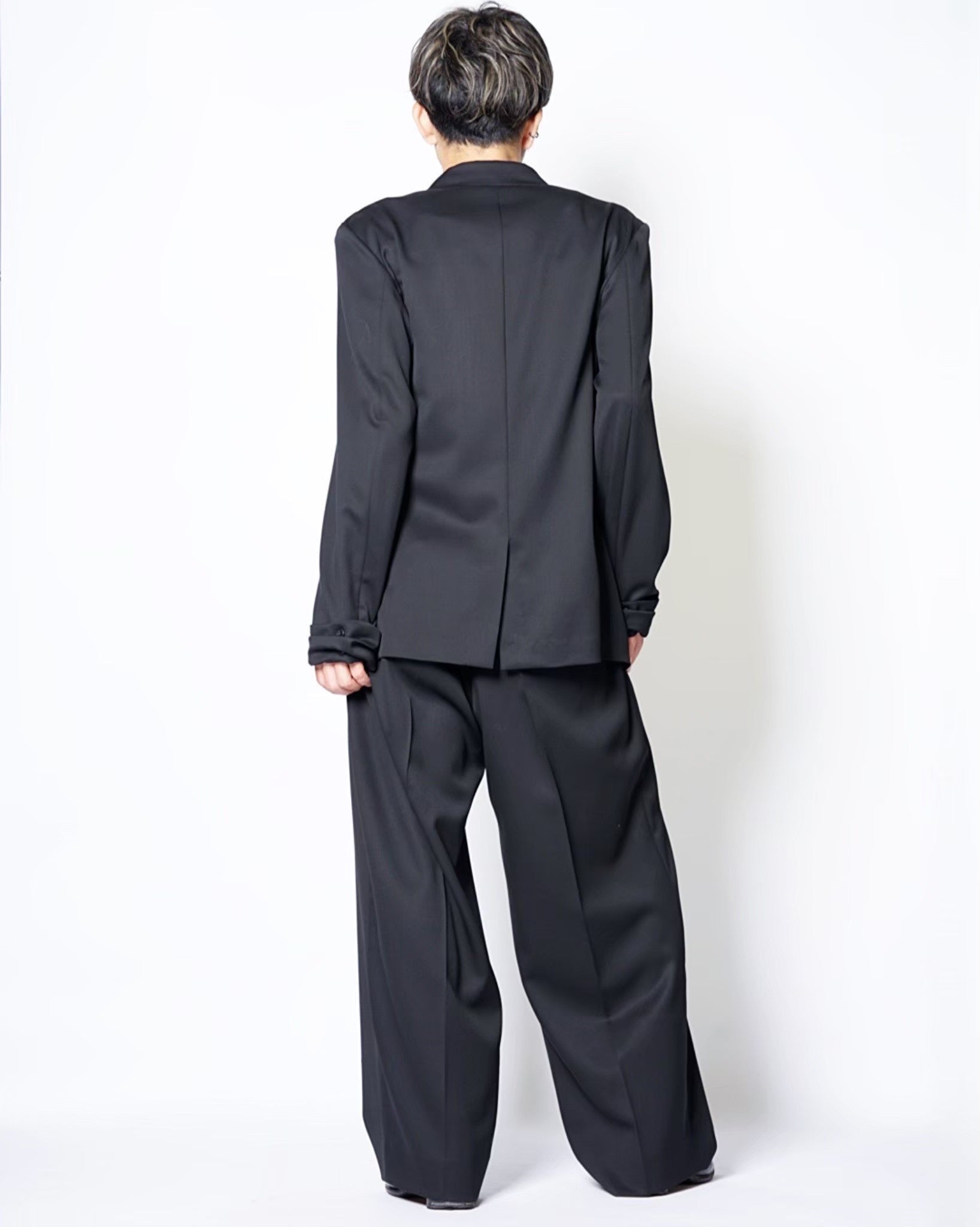 ・ダブルのテーラードジャケットのゆとりをそのままにKAKANらしく洗練された印象に作り上げた一着。