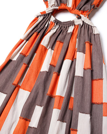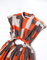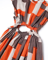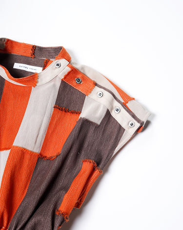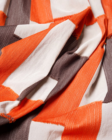 ・ベージュ、ブラウン、オレンジの組み合わせと色によって質感の異なる生地感が特徴のコットンジャカードを使用。