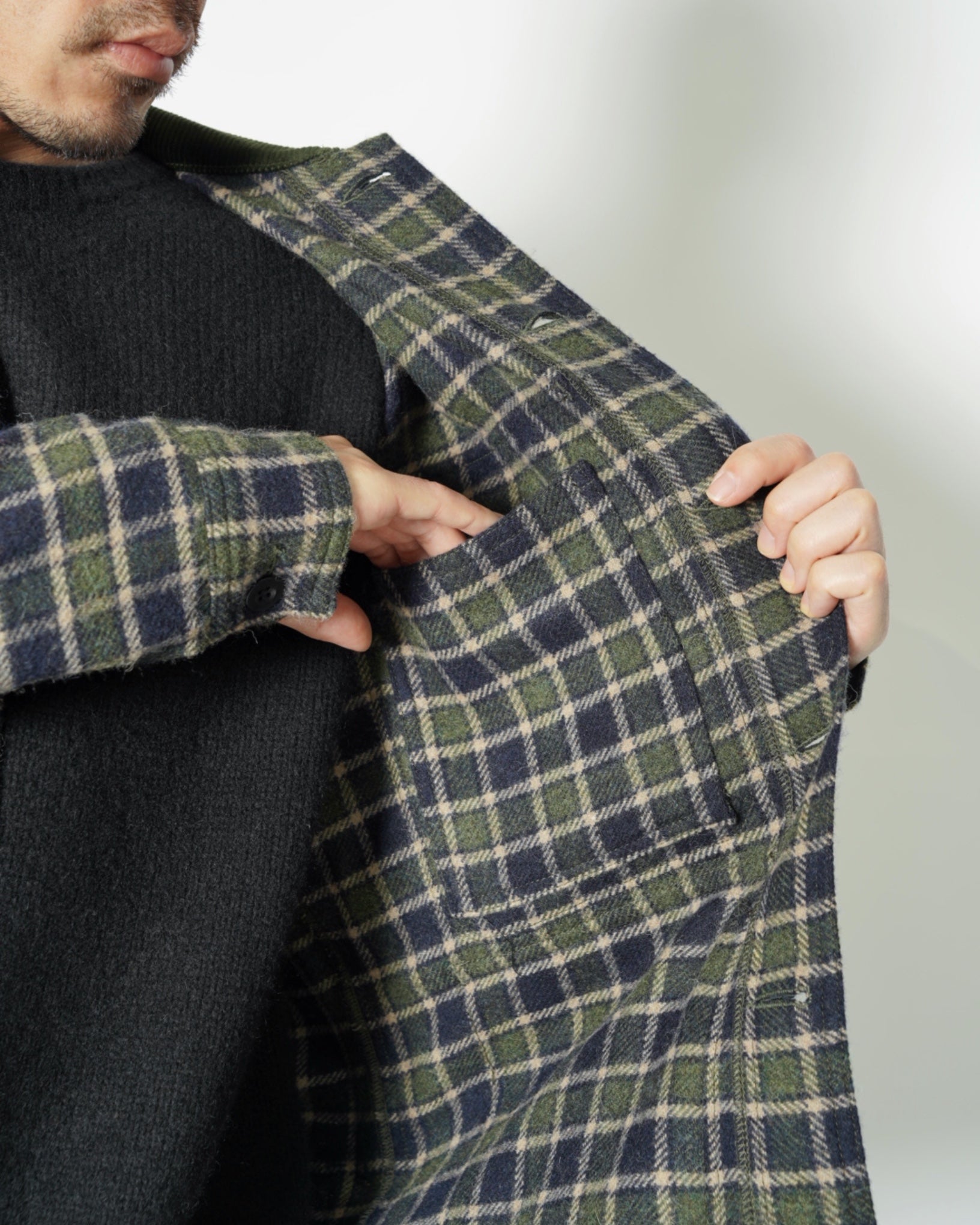 ・味のあるウール素材ながらごわつきが強すぎずに程よいしなやかさがあり、着やすいことも魅力となっています。
