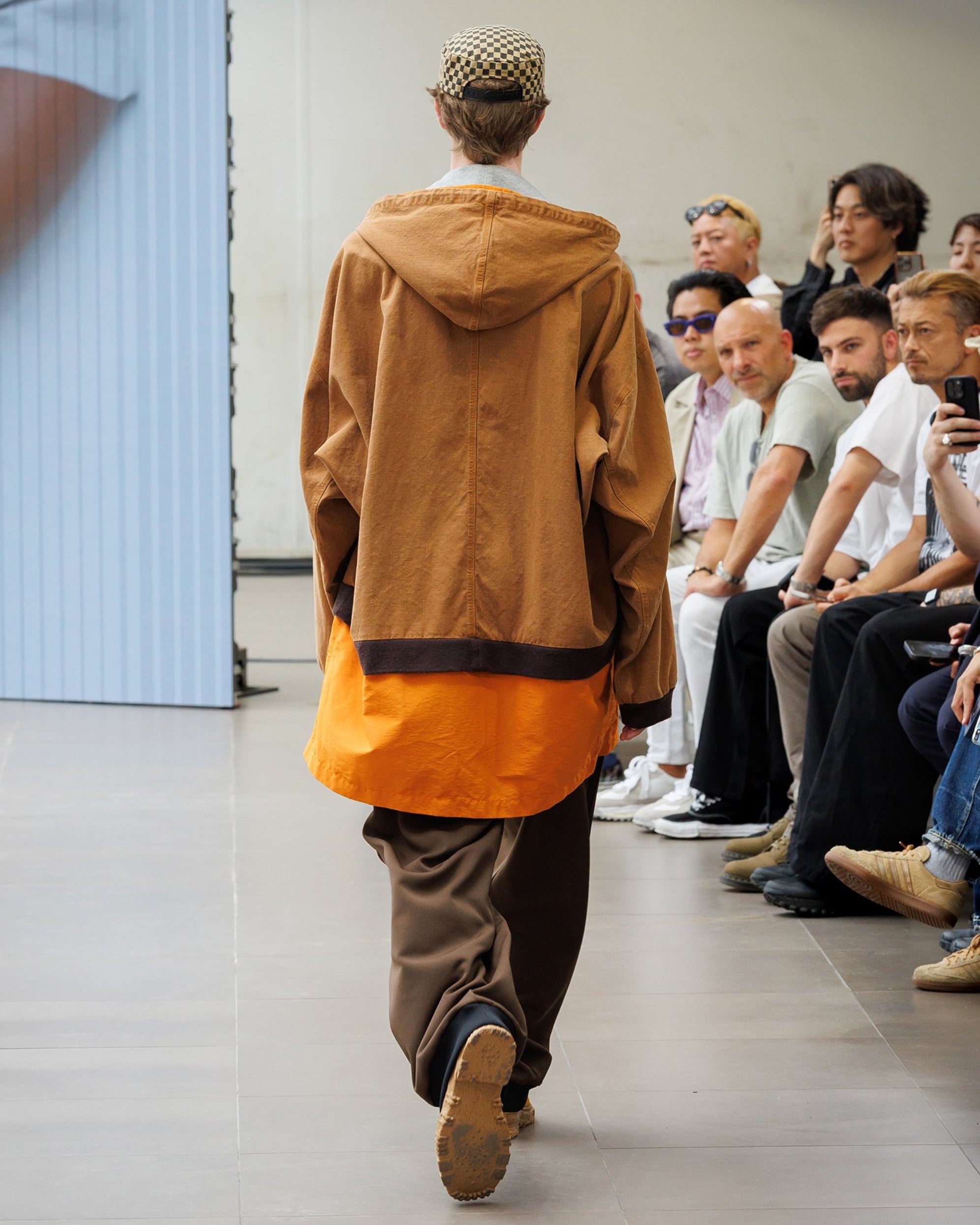 ・ボリューミーなサイジングと前振りの袖付けにより、ミハラヤスヒロらしい収まりの良いコクーンシルエットとなっていることも特徴的。
