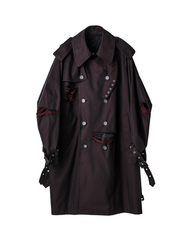 ・端正なトレンチコートにクラッシュダメージを加えた、The soloist.らしいハードなデザイン。