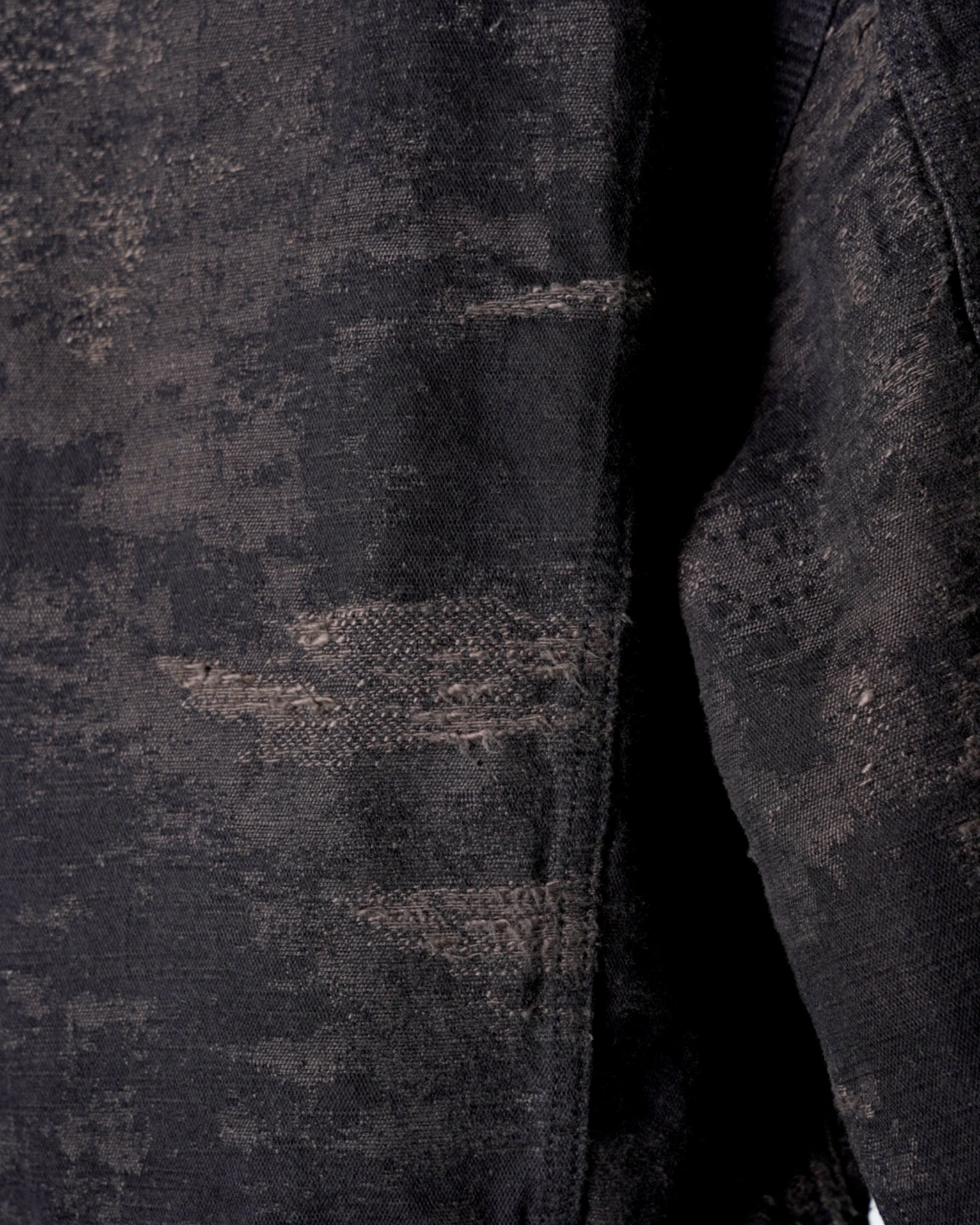 ・デニムのダメージ感をジャカード織りで表現した、TAAKKの技術力の結晶とも言えるテキスタイル。