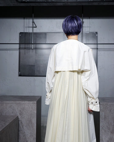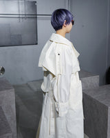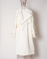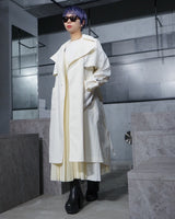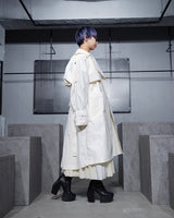 ・レインコートのようでありながらもフロントに大ぶりなラペルを作ることで端正な顔つきとなっています。