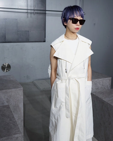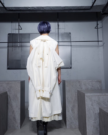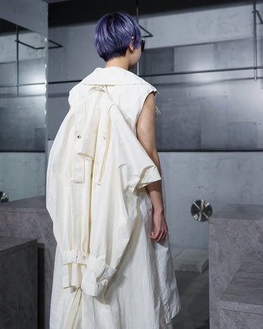 ・コート、ロングベスト、ブルゾンの3ウェイで着ることのできる、ギミック感のあるデザイン。