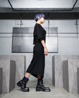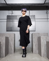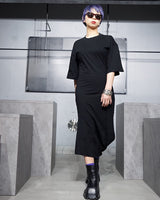 ・カットソー素材のドレスで楽に着ていただけますが、シックなブラックでエレガントな印象です。