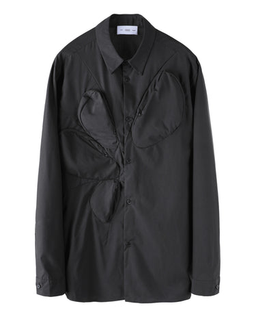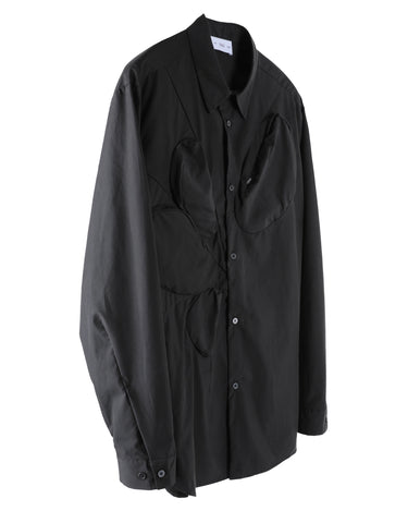 ・実用的なポケットとシンプルなシャツの意匠によってユーティリティーな仕上がりとなっており、どこか近未来的なユニフォームを思わせる造りです。