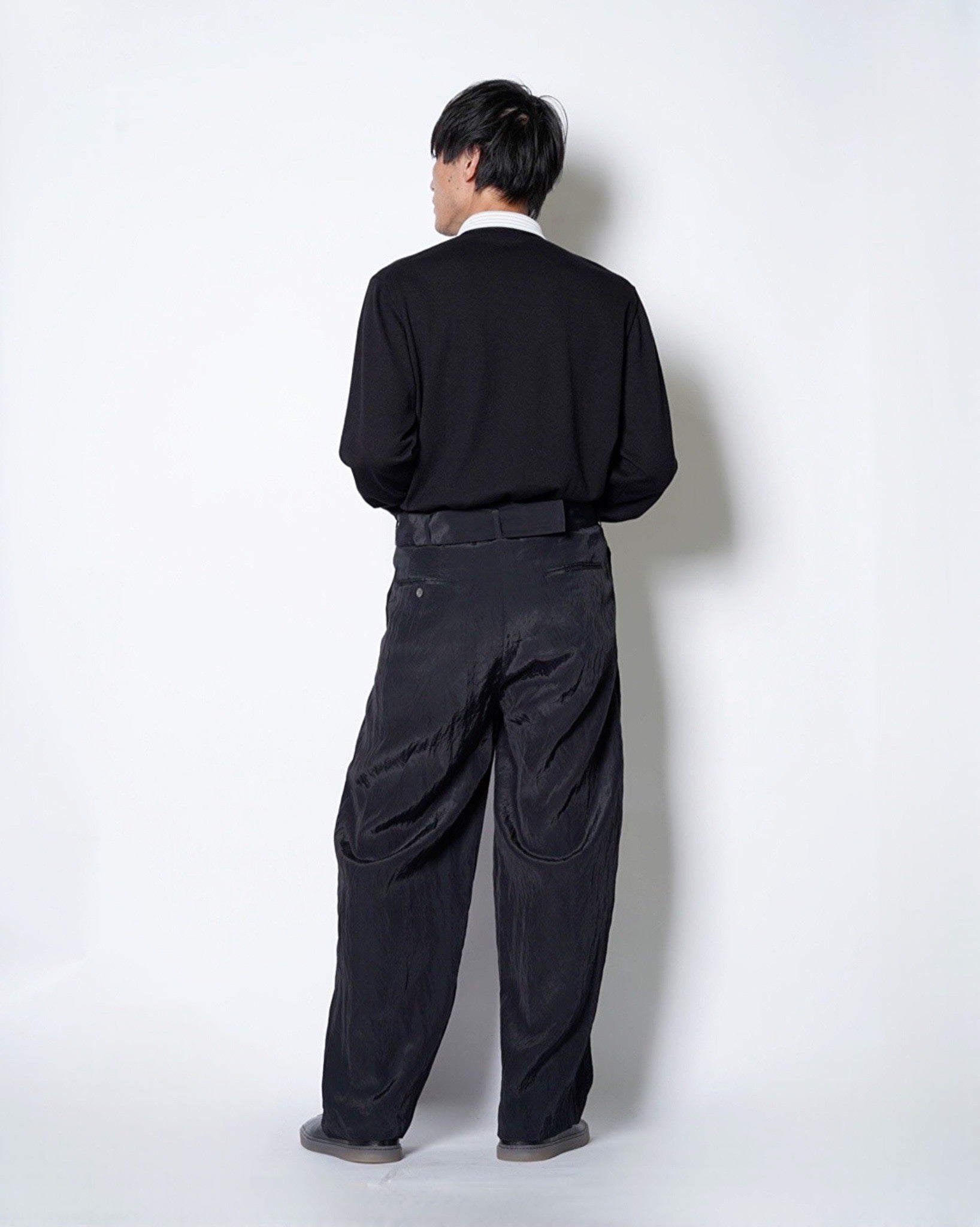 Viscose washer 2tuck belted wide pants (UNISEX)