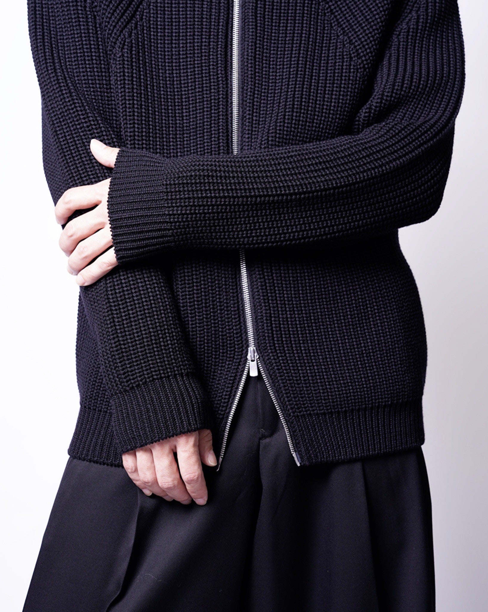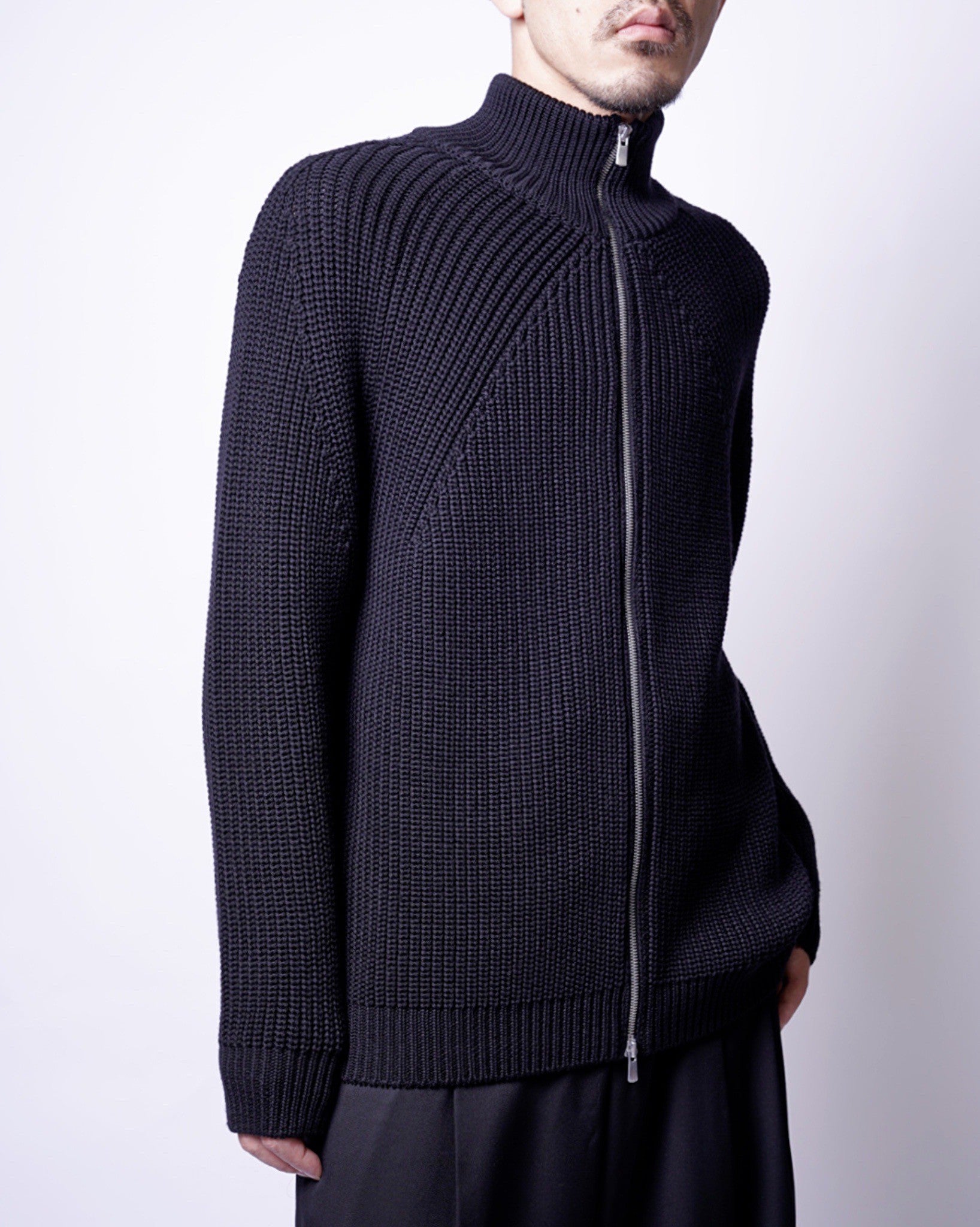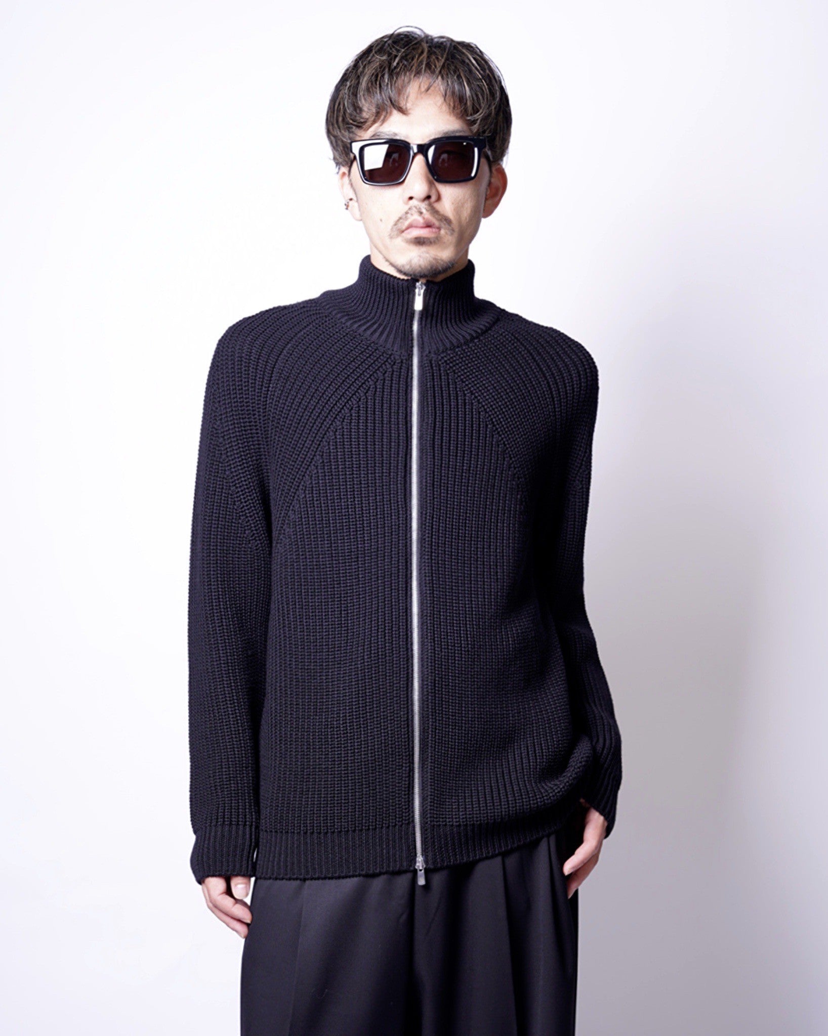 ・中央から流れる畦目の模様がアイキャッチなアイテムで、程よい高さのスタンドネックは日本人の首の長さに合いやすく、羽織りとしてだけでなくジップを全て閉めて、タートルネックのように着ていただけます。