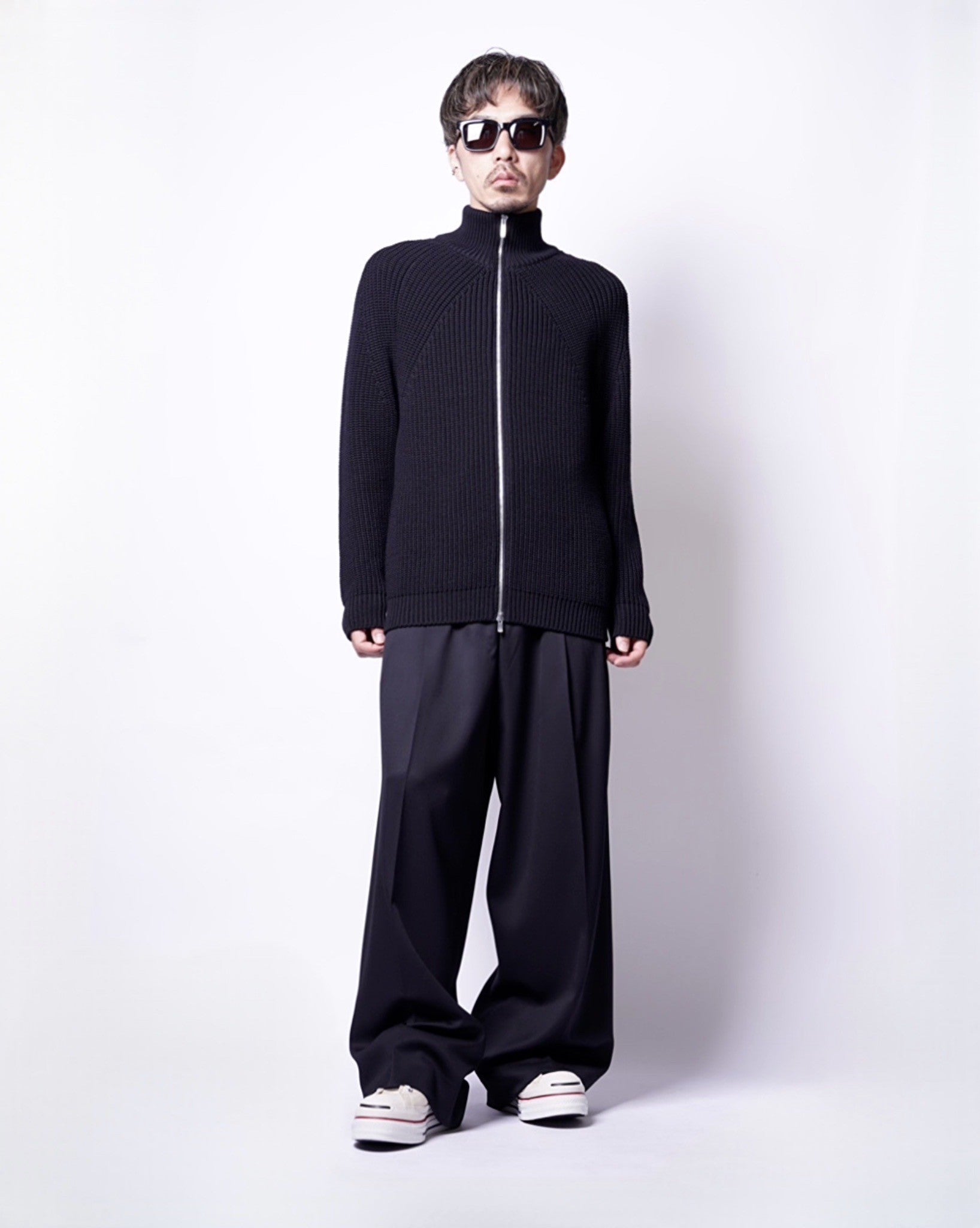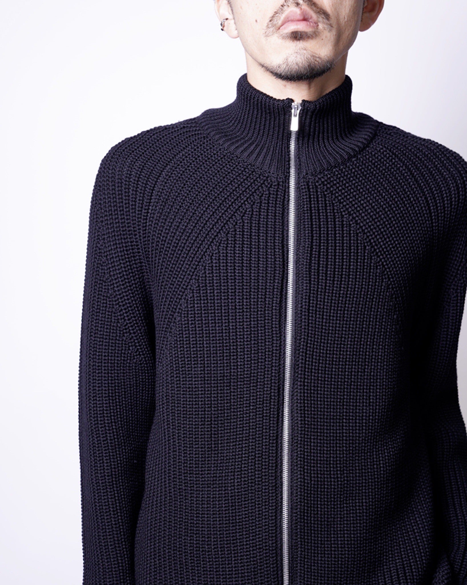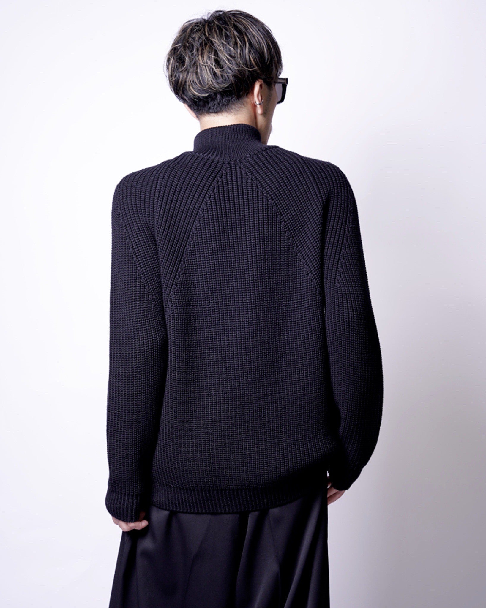 ・中央から流れる畦目の模様がアイキャッチなアイテムで、程よい高さのスタンドネックは日本人の首の長さに合いやすく、羽織りとしてだけでなくジップを全て閉めて、タートルネックのように着ていただけます。