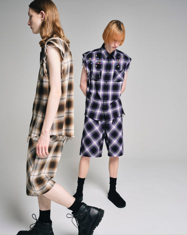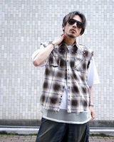 ・フランネルシャツをDIY感覚でベストに仕上げた、RAFUらしいこなれた雰囲気漂うデザイン。