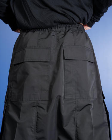 Rick Owensの真骨頂的なサルエルシルエットでスタイリングをファッショナブルに。