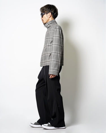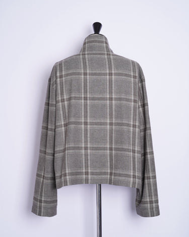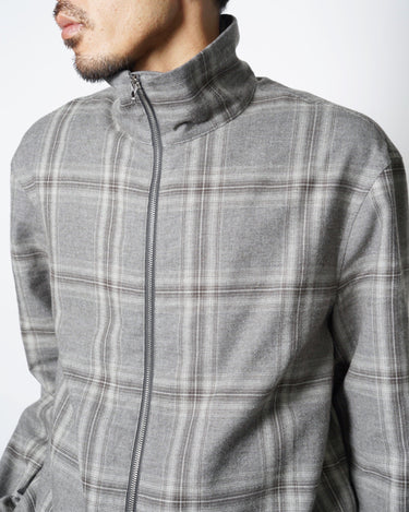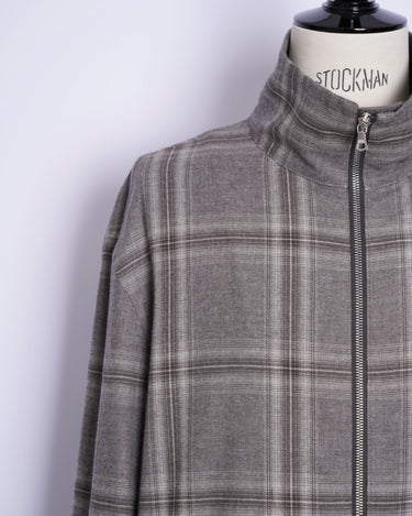 ・スタンドネックのブルゾンでオーセンティックなアイテムをベースとしながら、シックなグレーベースの品のあるウィンドウペンチェックで野暮ったさを感じさせないデザインに。