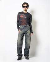 ・ワーキッシュな表情のデニムパンツですが、程よくワイドなシルエットでスタイリングを問わないデニムパンツとなっています。