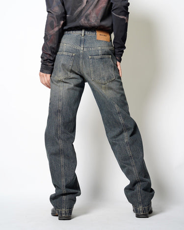 ・股上をややスッキリとしたフィット感にすることで余計なもたつきのない腰周りとなており、ワイドストレートながらも野暮ったさを感じさせません。