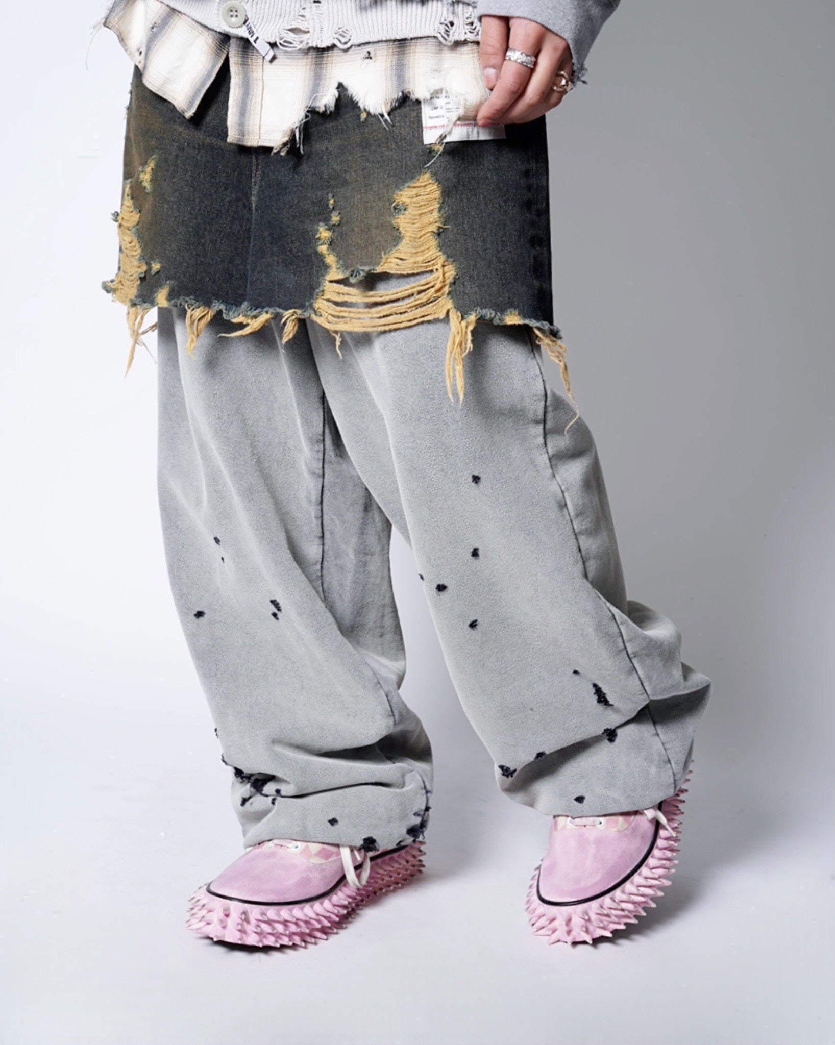 ・アッパー部分にはコットンキャンバスを使用し、更にダメージとダーティー加工を施しています。