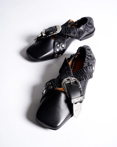 ・バレエシューズらしいスマートで繊細なニュアンスを残しつつも、それとは対極的なTOGAならではのメタルパーツのエッジとのコントラストが秀逸なデザイン。