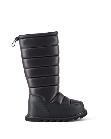 ・中綿の詰まった冬仕様のデザインで保温性が確保されていながら、シックでクールに引き締まった雰囲気が魅力の一足に。