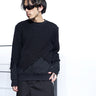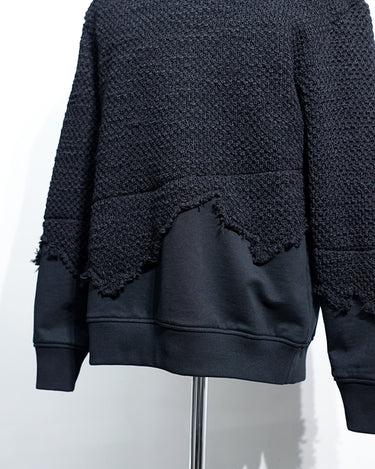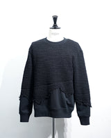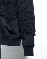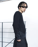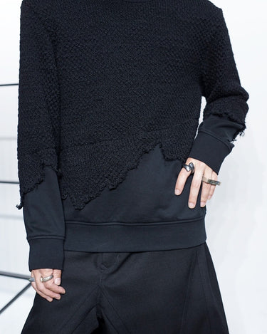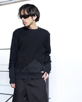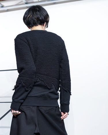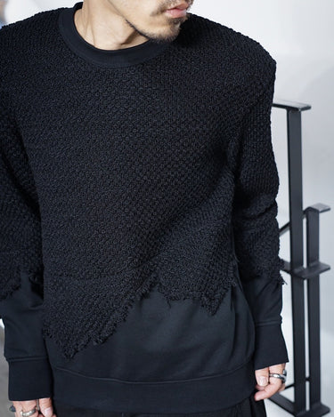 ・ニット部分を破壊的に切り取り、そこにスウェットをドッキングした再構築的デザイン。