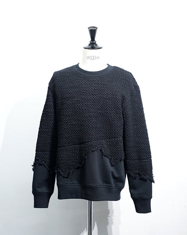 ・ざっくりとしたローゲージニットとスウェットをドッキングした、新鮮味溢れるデザイン。