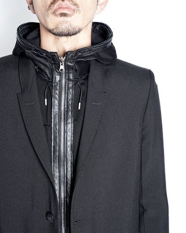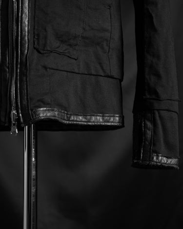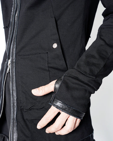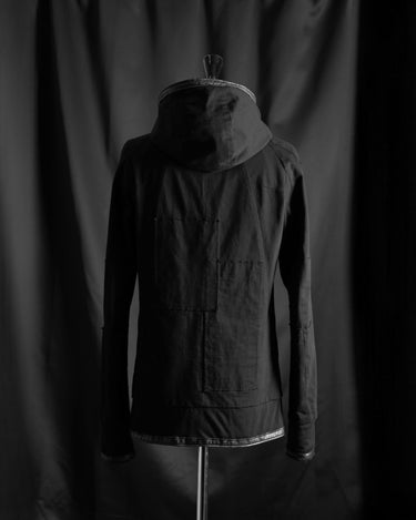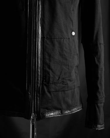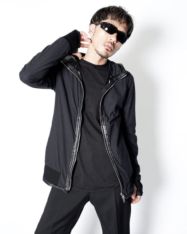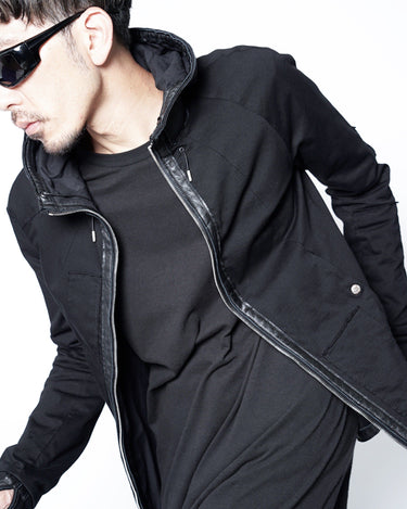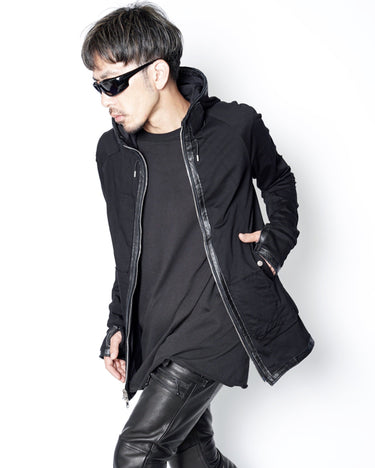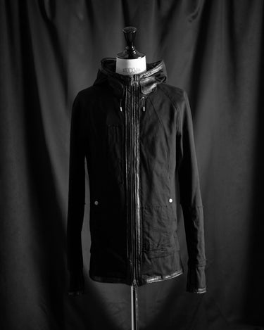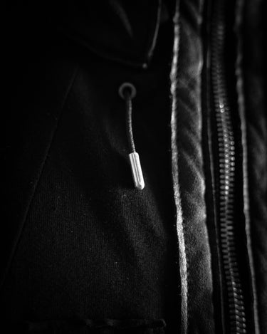 フードのレザーコードエンドが
