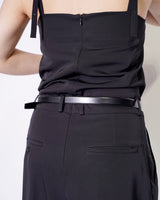 ・メタリックな素材使いがらしさを感じさせるベルト。